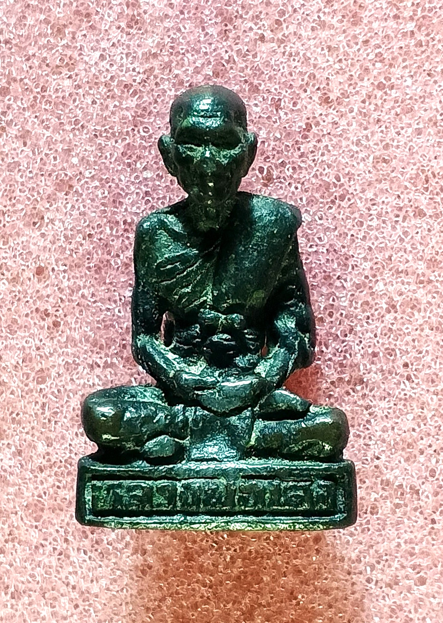 รูปหล่อหลวงปู่เส็งรุ่นแรก เนื้อตะกั่วชุบทองแดง รมดำ ฝังตะกรุดอุดผง สภาพสวยครับ