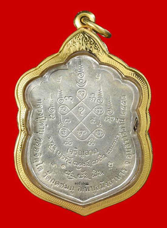 เหรียญเสมาเจริญลาภ หลวงปู่คำบุ วัดกุดชมภู เนื้อเงินลงยา หมายเลข21 พร้อมเลี่ยมทอง