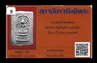 สมเด็จอินโดจีน พิมพ์ปรกโพธิ์ยันต์ข้างหลังเรียบ ปี2484 วัดสุทัศน์ กรุงเทพ