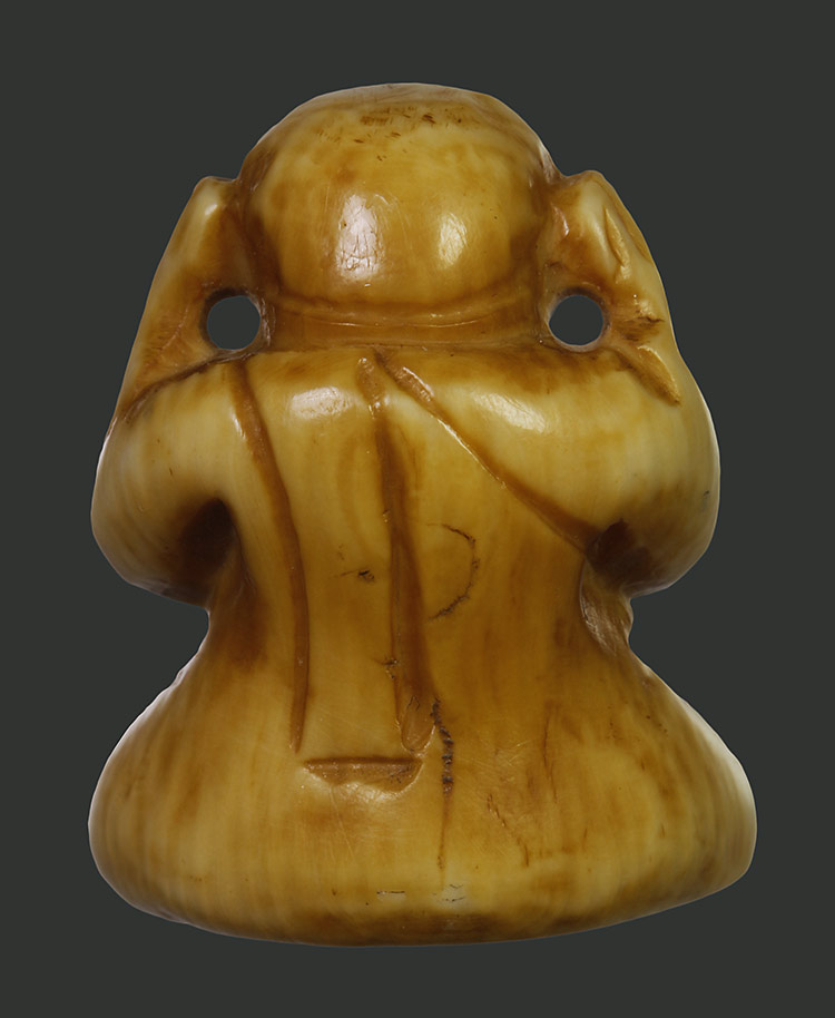 พระปิดตามหาอุตม์สายนครปฐม เนื้องาแกะฉ่ำเก่าลายงาสวย อายุกว่า 100 ปี หลังจารอุ กว้าง X ยาว 1.7 X 2.2 ซม.