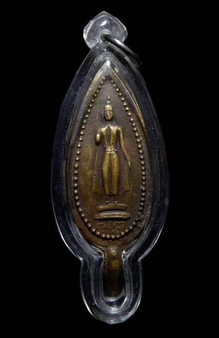 เหรียญหล่อพระร่วงโรจนฤทธิ์ วัดพระปฐมเจดีย์ จ.นครปฐม เนื้อทองเหลือง ปี 2487 พิมพ์ใบมะยม
