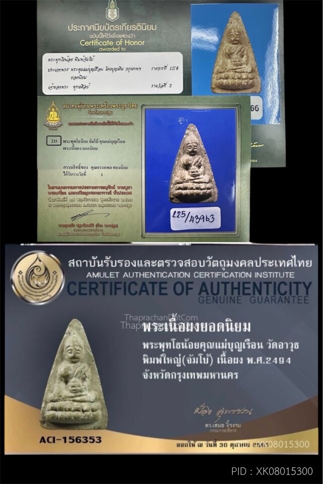 พระพุทโธน้อย สร้างปีพ.ศ.2494 พิมพ์จัมโบ้ สุดยอดพระหลักยอดนิยม หายากที่สุดในสาย เป็นพระที่มีหมุนเวียนน้อยมากๆ ยิ่งสภาพสวยๆนับองค์ในวงการได้เลยครับ องค์นี้สภาพแชมป์เปี้ยน ติดรางวัลงานใหญ่มาสามงานแล้ว และที่สำคัญได้รับเกียรติลงนสพ.ไทยรัฐ คอลัมน์สนามพระวิภาวดีฉบับวันที่ 4 พฤษภาคม 2568 ถือเป็นที่สุดแล้วครับ ขอโชว์เท่านั้น