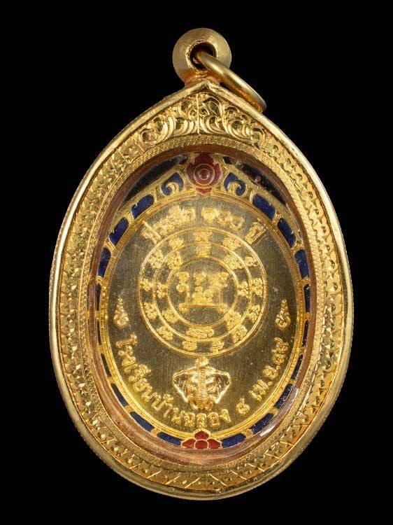 เหรียญทองคำลงยา พร้อมเลี่ยมทองโบราณ โรงเรียนบ้านฉลอง