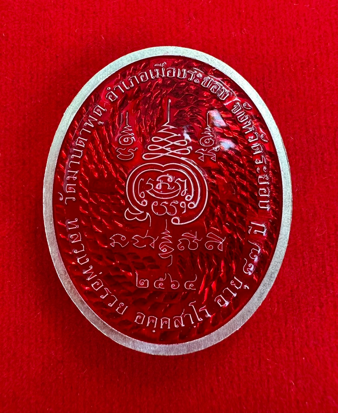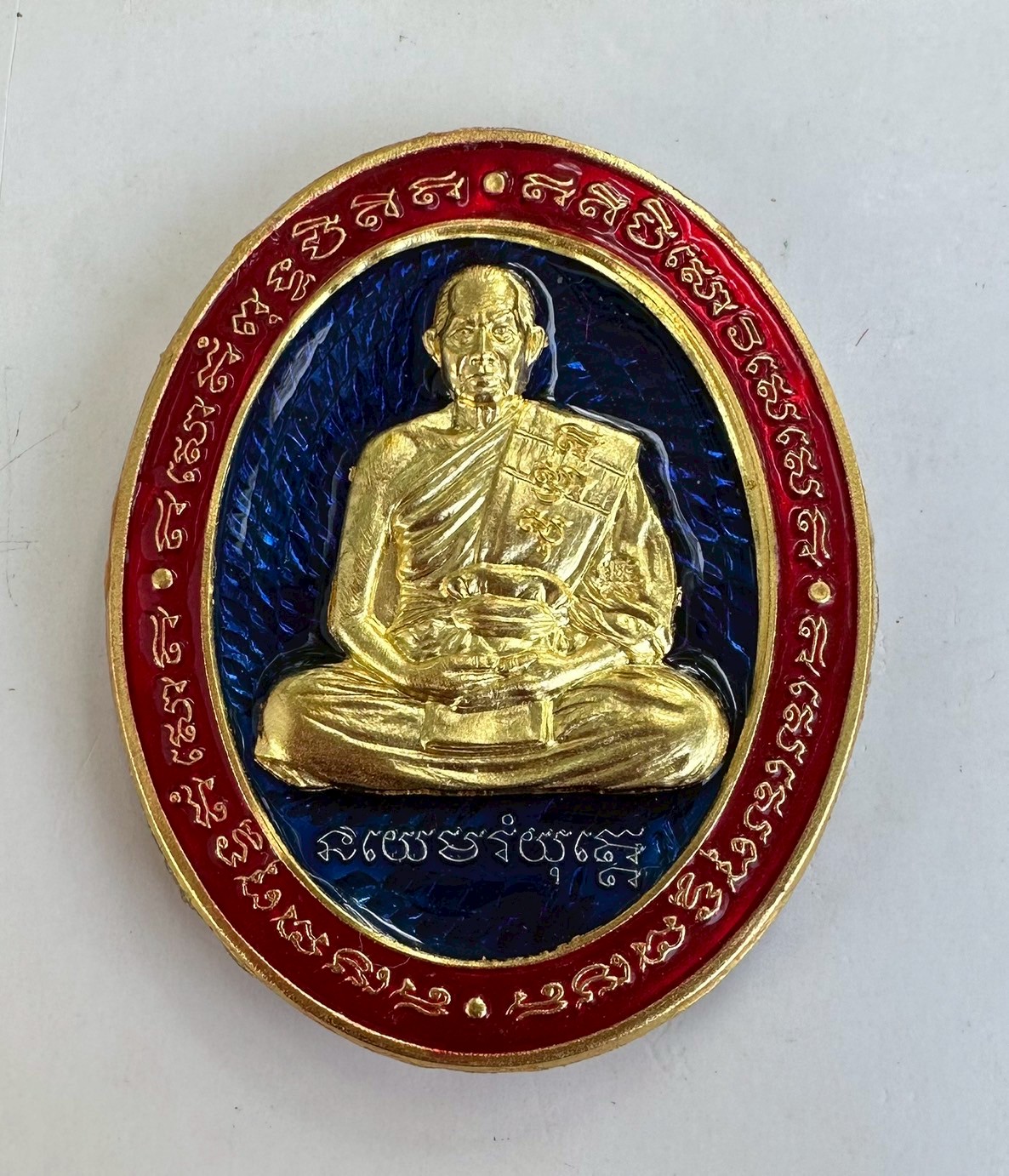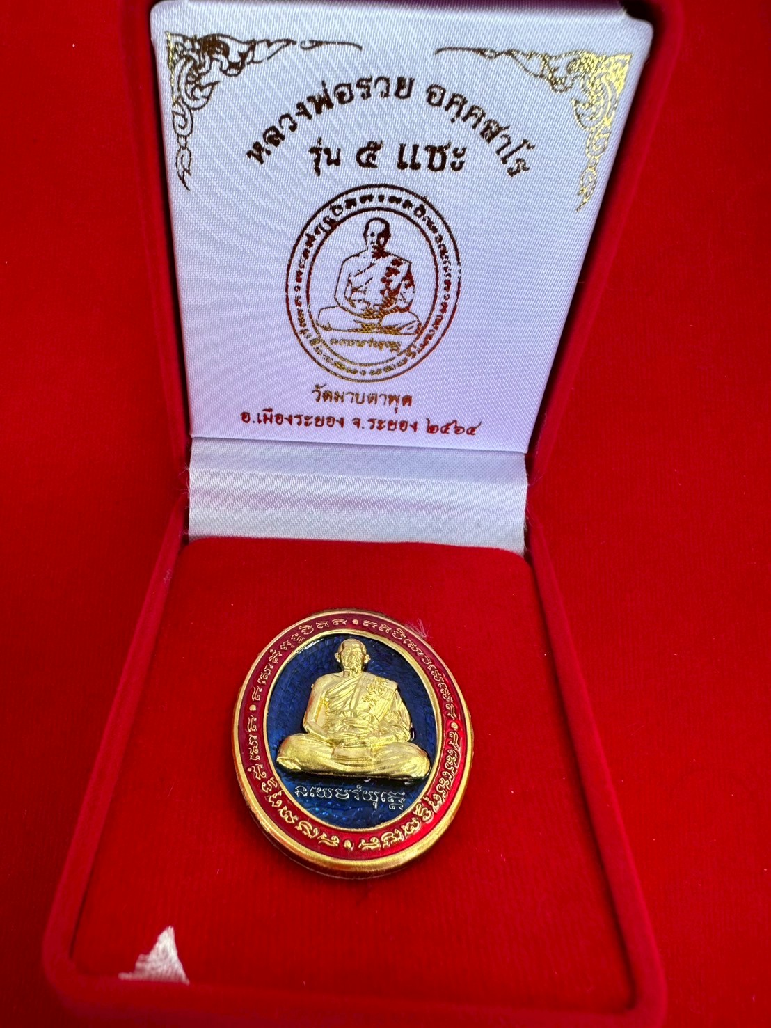 เหรียญ5แชะหลวงพ่อรวย วัดมาบตาพุด เนื้อเงินหน้ากากทองคำ-ขอบทองคำลงยาแดง พื้นลงยาสีน้ำเงิน หลังลงยาแดง หมายเลข 15 (สร้าง 29 เหรียญ) รองท็อปรองจากทองคำ สวยงามครับ