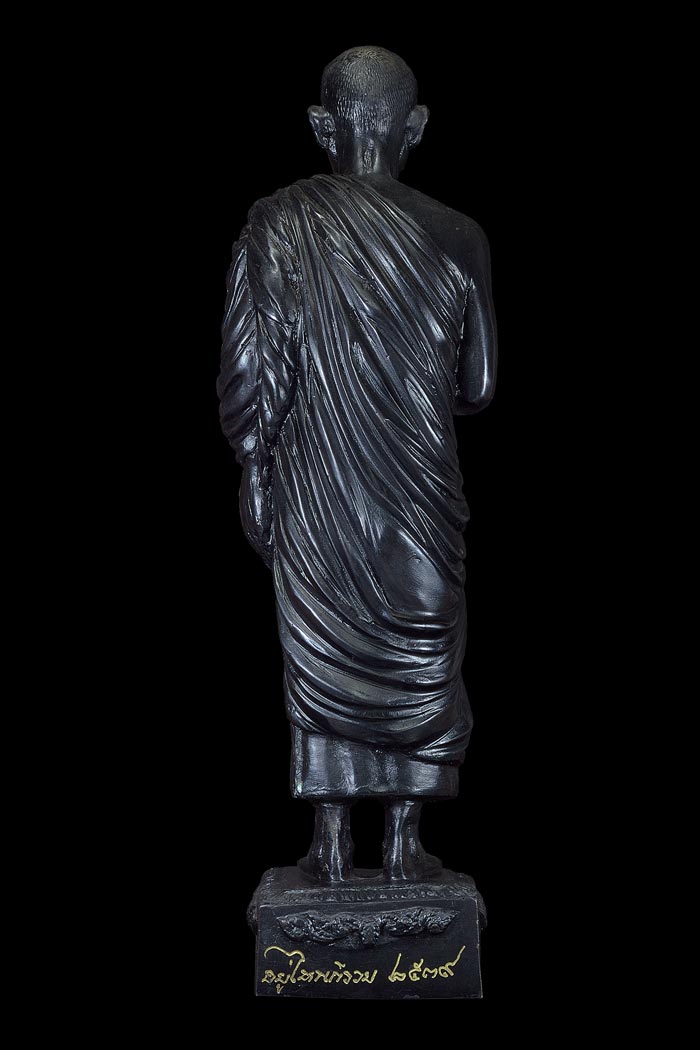 | พระบูชารูปเหมือนยืน ( ถือไม้เคาะศีรษะ , สูง 12 นิ้ว , ฐาน 3 นิ้ว ) อยู่ไหนก็รวย แผ่บารมี หลวงพ่อคูณ ปริสุทฺโธ วัดบ้านไร่ ( เนื้อโลหะรมดำ ) พ.ศ.2539 ( ใต้ฐานฝังเหรียญนั่งยองขอบสตางค์ รุ่น สร้างบารมี พ.ศ 2539 ) / ผู้จัดสร้าง พระปลัดไวพจน์ กตปุญฺโญ ( เจ้าอาวาส ) วัดสามง่าม ต.ลำโพ อ.บางบัวทอง จ.นนทบุรี / ปลุกเสก วาระ 1 หลวงพ่อคูณ ปลุกเสกเดี่ยว วันที่ 23 เมษายน พ.ศ.2539 / ปลุกเสก วาระ 2 ณ อุโบสถวัดสามง่าม อ.บางบัวทอง จ.นนทบุรี พระเทพประสิทธิ์คุณ เจ้าอาวาสวัดระฆังโฆสิตาราม ( ประธานจุดเทียนชัย ) , หลวงพ่ออุตตมะ เจริญจิตภาวนา ปลุกเสกประคำ และ ประพรมน้ำพระพุทธมนต์ , พระสงฆ์ทรงสมณศักดิ์ เจริญพระพุทธมนต์ ล พระเกจินั่งปกอธิษฐานจิต , หลวงพ่อทองกลึง เจริญจิตภาวนา บวงสรวงบูชาเทพ ยคาอารักษ์ |