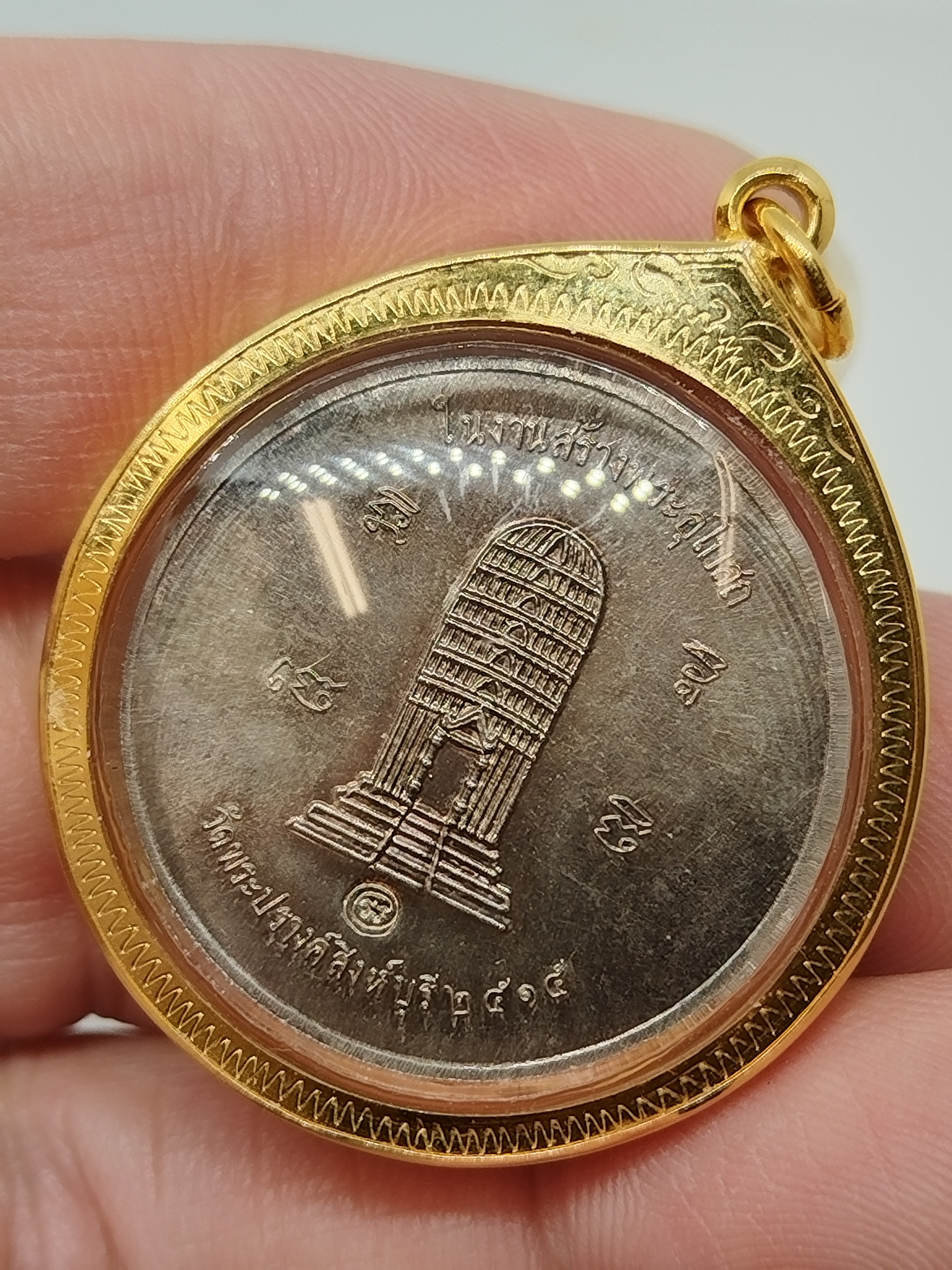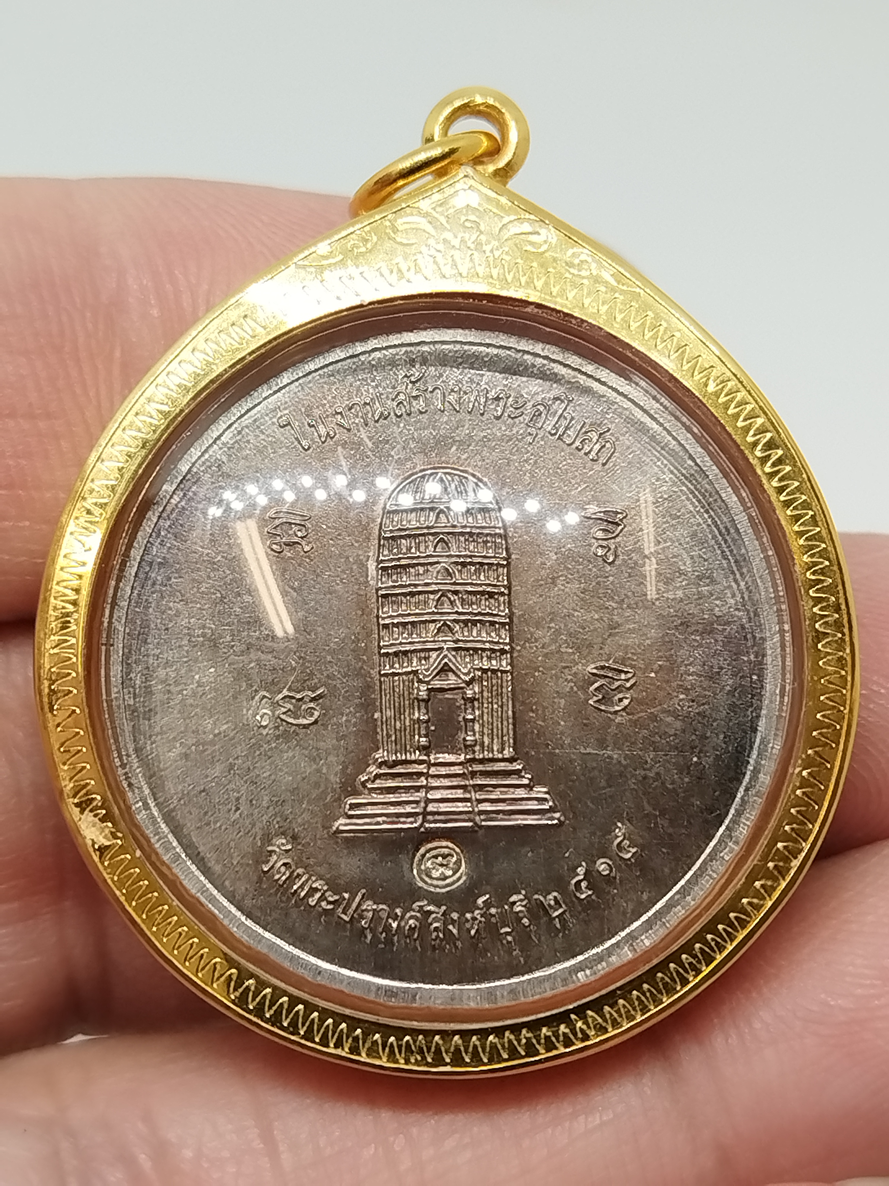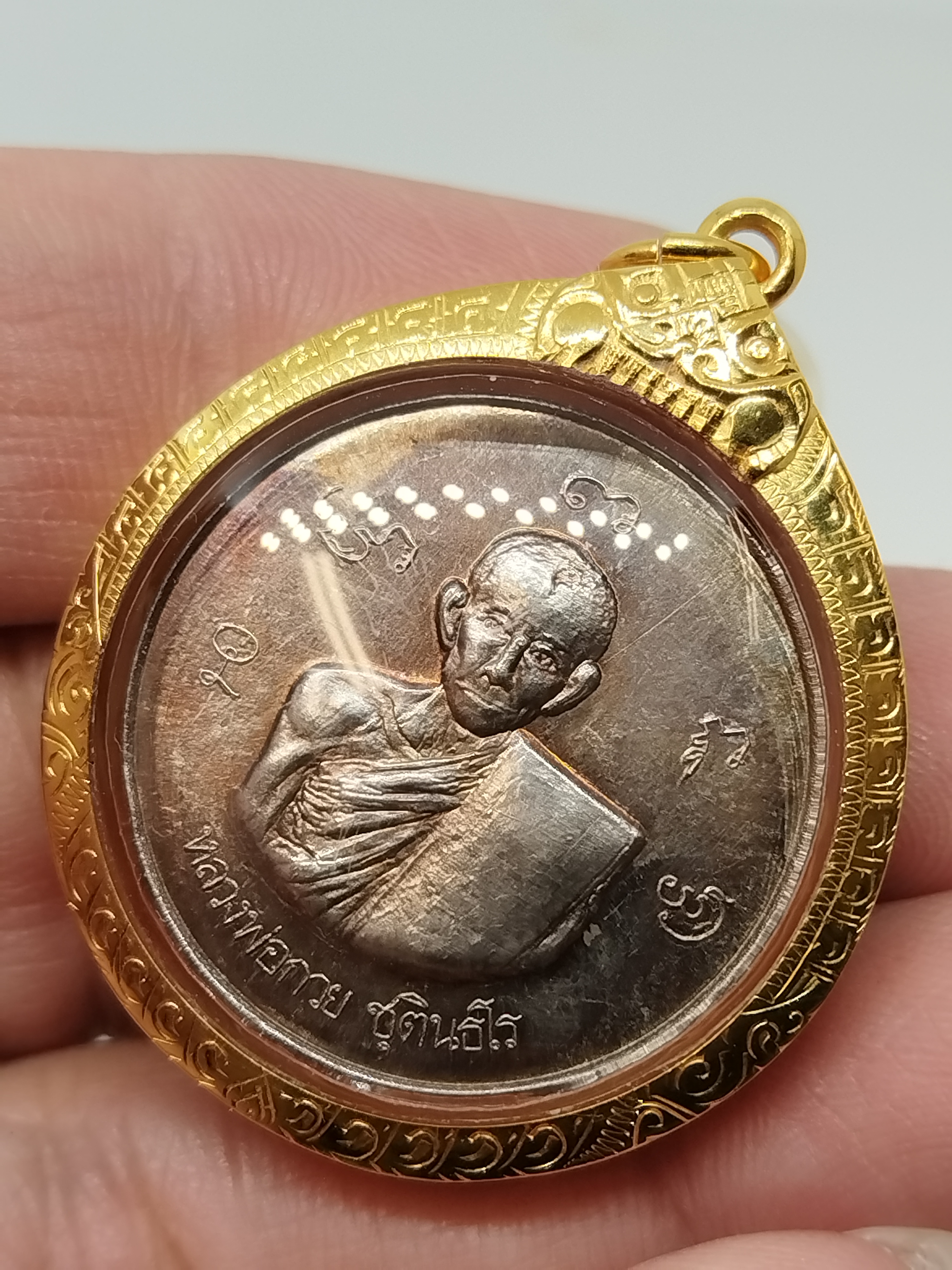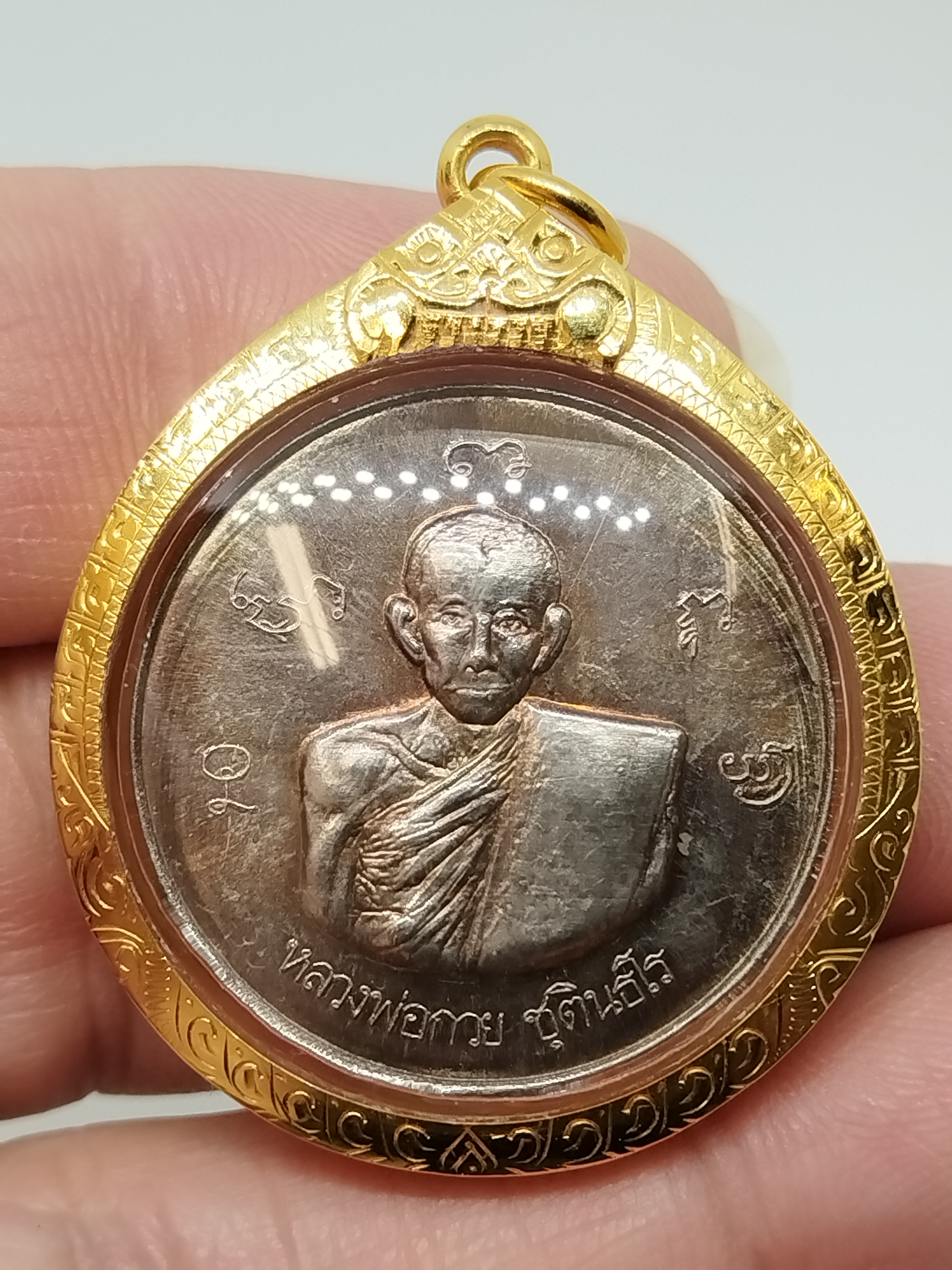 เหรียญหลวงพ่อกวย ปี 15 วัดพระปรางค์ จ.สิงห์บุรี เนื้อเงิน สวยๆ เดิมๆ คมจัด ชัดเจน เลี่ยมทองพร้อมใช้