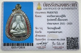 ปลดหนี้หลังยันต์นะ เนื้อผงเกสร บรรจุตระกรุดคู่ จำนวนสร้าง 3000 องค์ ปลุกเสกสามไตรมาส ระหว่างพ.ศ.2521-2523 พระองค์นี้สวยเดิมนิ้วมือเรียงเป็นแท่ง ยันต์ด้านหลังติดชัด พร้อมเส้นเกสาหลายเส้น ตะกรุดไม่เป็นสนิมเขียว ล่าสุดประกวดติดที่สาม งานใหญ่สมาคมฯจัดขึ้นจันทบุรี เมื่อวันที่17-18 พ.ค. พร้อมบัตรรับรองครับ