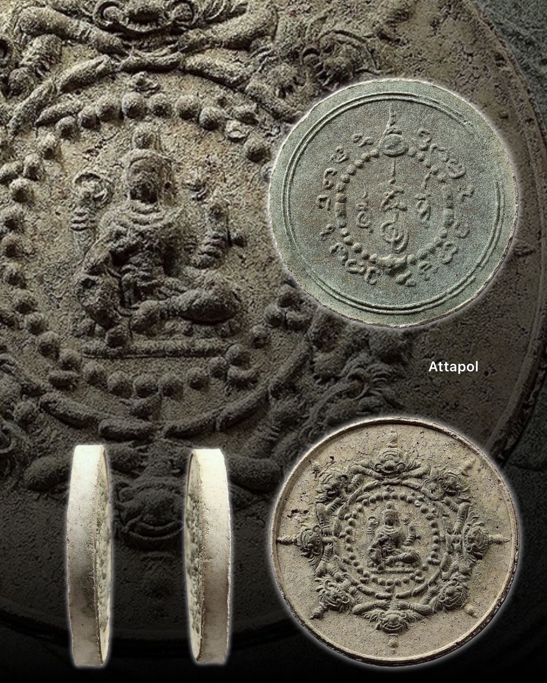 (สวยงามมากๆราคาเริ่มกลับมาแรงขึ้นเรื่อยครับ)✨ องค์พ่อจตุคาม ปี30(รุ่นแรก)พิมพ์ใหญ่ เนื้อผงตะไบมีดดาบฟ้าฟื้น...เนื้อผงตะไบมีดดาบฟ้าฟื้นเป็นพระผงสุริยัน-จันทรา ที่ผสมเนื้อขึ้นเป็นพิเศษโดยองค์จุตคามรามเทพ จากนั้นให้ท่านสรรเพชญโรยผงตะไปมีดซึ่งเรียกมีดเล่มนี้กันหลายชื่อ ได้แก่ มีดดับสุริยา ดาบฟ้าฟื้น ถือเป็นมีดที่สร้างขึ้นด้วยวัสดุและกรรมวิธีที่สุดยอดจำนวน 7 เล่ม โดยเล่มที่ใหญ่ที่สุดเกือบจะเป็นมีดดาบและมีอักขระเลขยันต์ที่พิเศษกว่าเล่มอื่น ๆ ได้มอบให้กับท่านสรรเพชญ และท่านสรรเพชญได้ตกแต่งด้วยการตะไบและเก็บผงตะไบไว้ จนกระทั่งมีการทำพระผงสุริยัน-จันทรา ด้วยเนื้อพิเศษจึงได้นำมาโรยเพื่อให้เป็นพระที่มีความพิเศษ คือเป็นทั้งมีดและเป็นทั้งพระผงสุริยัน-จันทรา ที่มีความศักดิ์สิทธิ์ยิ่งนัก ข้อสังเกตสำหรับเนื้อพระจะมีลักษณะเป็นเนื้อผงละเอียดสีขาวใส ซึ่งผมขอเรียกว่าเนื้อเกสร การโรยผงตะไบมี 2 แบบคือ แบบโรยผงตะไบธรรมดา และปิดทองหรือที่ท่านสรรเพชญเรียกว่าเปียกทอง แบบโรยผงตะไบธรรมดา จะมองเห็นชัดว่าผิวของเนื้อพระจะขึ้นสีเขียวจาง ๆ และไม่มีทองปิด แบบโรยผงตะไบเปียกทอง ลักษณะผิวองค์พระจะขึ้นคราบเขียวและมีทองปิดอยู่ด้านบน ทองที่ปรากฏจะเป็นทองสีสดใส ส่วนคราบเขียวจะมีลักษณะฟูขึ้นมา บางส่วนจะนูนขึ้นเหนือทอง ที่มีลักษณะเช่นนี้มีสาเหตุจากการปิดทองที่ต้องมีตัวประสานกับองค์พระทำให้ผงตะไบทำปฎิกิริยาเกิดความเขียวฟูขึ้น ทั้ง 2 แบบจะโรยผงตะไบเฉพาะด้านหน้า