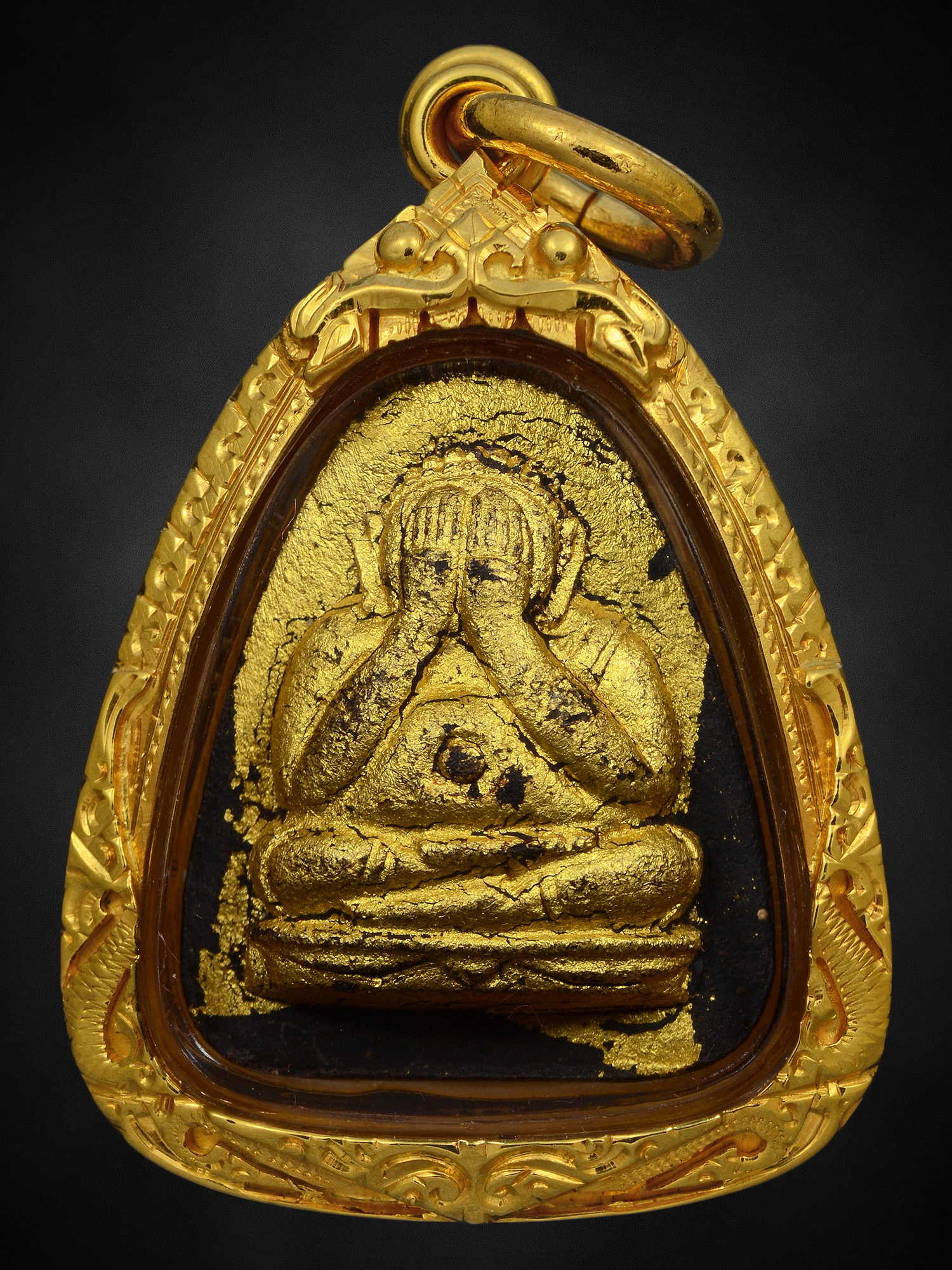 พระปิดตาเมตตาเนื้อผงคลุกรักปิดทอง ปี2517 สร้างพร้อ
