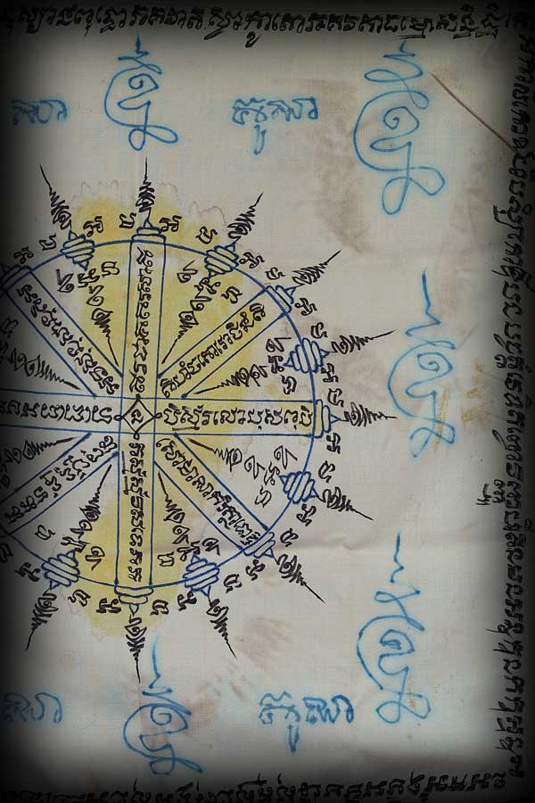 ผ้ายันต์ประทับรอยเท้าขวาขมิ้นสด ( 17 X 17 นิ้ว ) หลวงพ่อคูณ ปริสุทฺโธ วัดบ้านไร่ พ.ศ.2527 / ผืนนี้พิเศษ จารยันต์อักขระ เพิ่มจากเดิม ลายมือหลวงพ่อทอง / จัดสร้าง 90 ผืน " เย็บเก็บขอบผ้าทุกผืน " / จารยันต์อักขระ " ยันต์อิติปิโส 8 ทิศ ลงกลาง และ รอบผ้า " ลายมือหลวงพ่อทอง สุทฺธสีโล ศิษย์เอกหลวงพ่อคูณ / จัดสร้างขึ้นตอนจำพรรษาวัดสระแก้ว อ.เมือง จ.นครราชสีมา