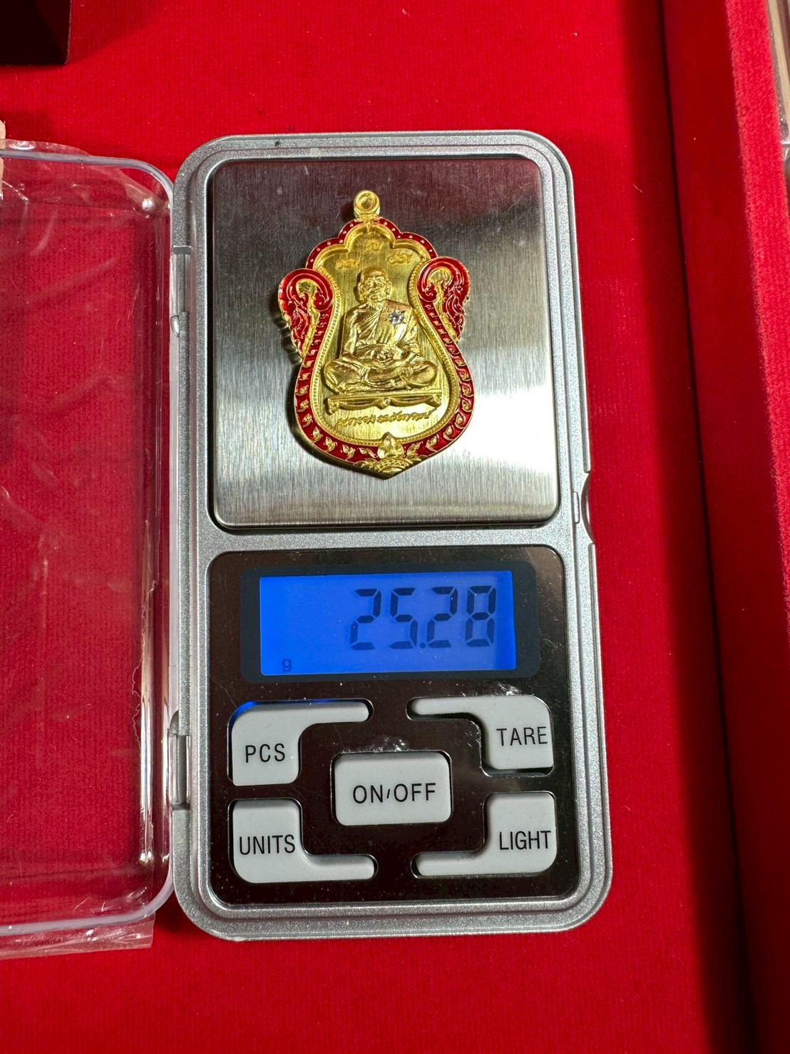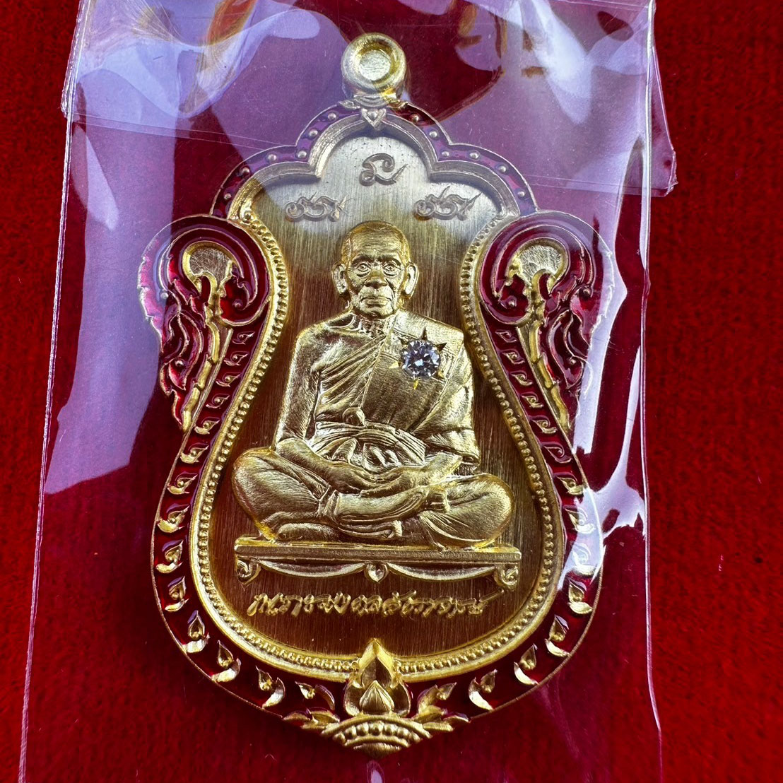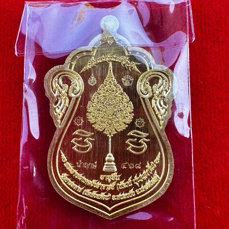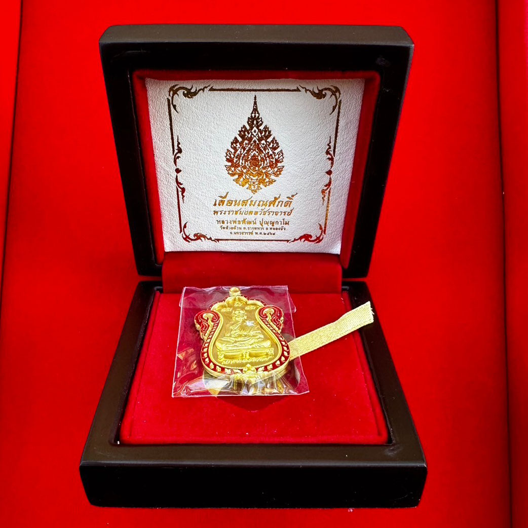 เหรียญหลวงพ่อพัฒน์ วัดห้วยด้วน รุ่นเลื่อนสมณศักดิ์ปี 2564 เนื้อทองคำ ปะฉลุขอบลงยาสีแดง โค้ตนำฤกษ์ หมายเลข 468