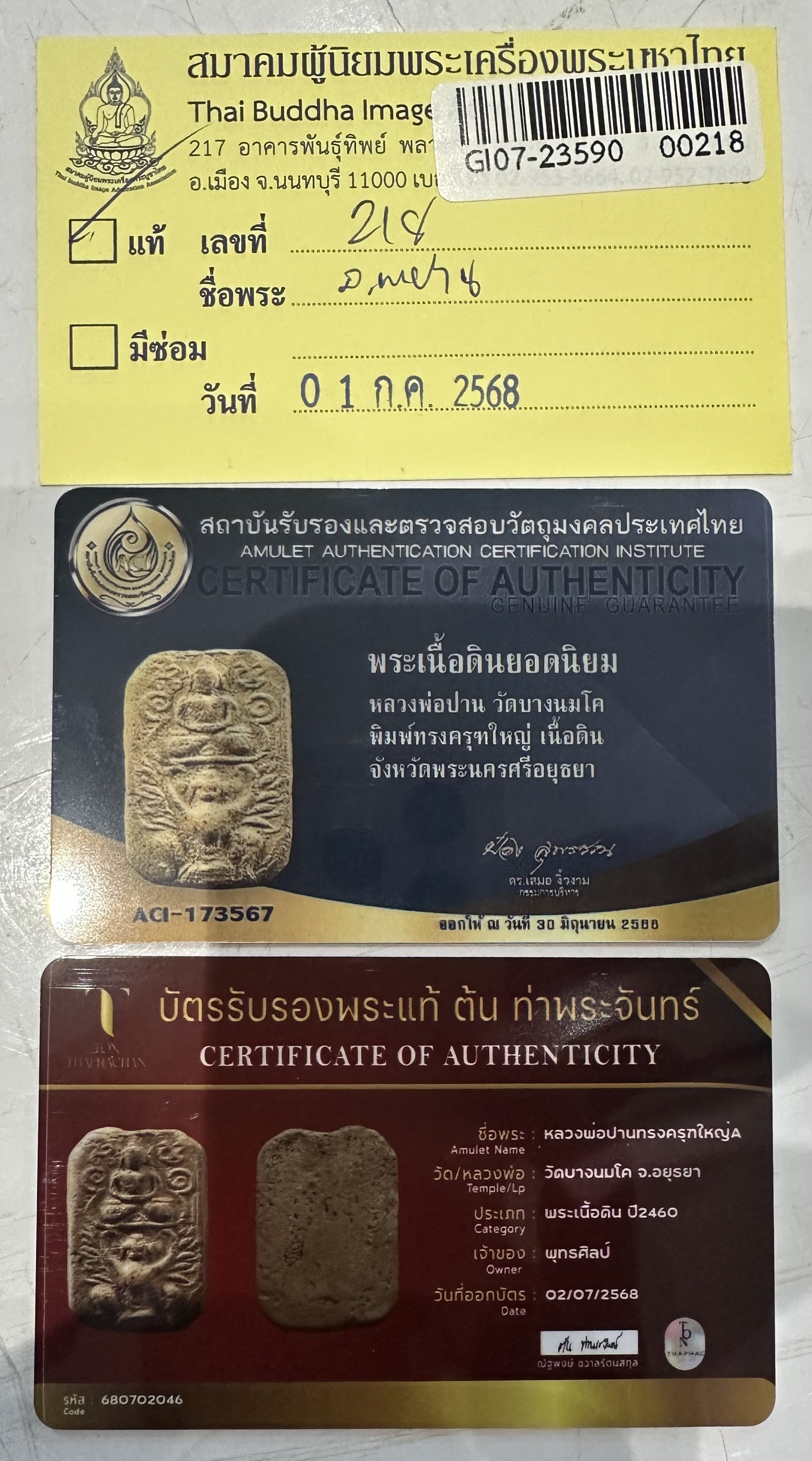 พระหลวงพ่อปาน วัดบางนมโค ทรงครุฑใหญ่A นิยมสุด แชมป์งานสมาคมที่โคราชล่าสุดปี68 พร้อมบัตรรับรอง3สถาบัน