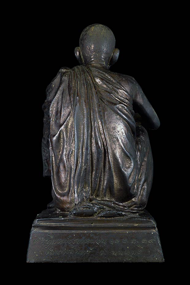 | พระบูชารูปเหมือนนั่งยอง 5 นิ้ว ( เนื้อโลหะรมน้ำตาล ) วัดนครอินทร์ จ.นนทบุรี พ.ศ.2539 จัดสร้าง 200 องค์ ใต้ฐานฝังเหรียญ รุ่น บารมีธรรม เนื้อทองแดงผิวไฟ , ฝังขวดแก้วบรรจุเกศาหลวงพ่อคูณ-จีวรหลวงพ่อคูณ-เม็คแร่บางไผ่ จารยันต์อักขระลายมือพระอาจารย์สมศักดิ์ / ผู้จัดสร้าง พระอาจารย์สมศักดิ์ ฐิตสกฺโข วัดนครอินทร์ ต.สวนใหญ่ อ.เมือง จ.นนทบุรี / วัตถุประสงค์ ที่รฤกหล่อรูปเหมือนหลวงพ่อคูณเท่าองค์จริง จำนวน 1 องค์ และ ขนาด 5 นิ้ว 200 องค์ หล่อเมื่ิอวันที่ 13 ธันวาคม พ.ศ.2539 และ ปลุกเสก ณ วัดบ้านไร่ อ.ด่านขุนทด จ.นครราชสีมา เมื่อวันที่ 9 มกราคม พ.ศ.2540 พร้อมเหรียญ รุ่น บารมีธรรม และ บารมีคูณ มวลสาร ทองคำแท่ง 52 แท่ง น้ำหนัก 260 บาท , แผ่นยันต์เนื้อโลหะ 9 แผ่น , เส้นเกศา-จีวรหลวงพ่อคูณ และ แผ่นจารปลุกเสกโดยหลวงพ่อคูณ ซึ่งเป็นแผ่น รุ่น พระกริ่งญาณวิทยาคม หลวงพ่อคูณได้มอบให้เป็นชนวนหลอมรูปเหมือนและเส้นเกศา-จีวร เพื่อบรรจุใต้ฐานรูปเหมือนหลวงพ่อคูณเท่าองค์จริง และ ขนาด 5 นิ้ว |