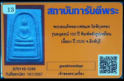| สมเด็จหลวงพ่อแพ พิมพ์ใหญ่ อนุสรณ์ 100ปี ปี2535 วัด |