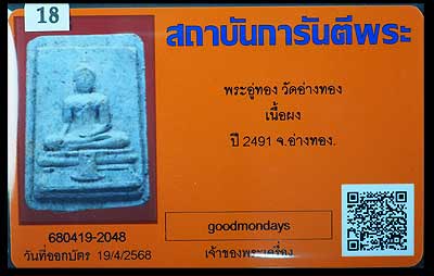 | พระอู่ทอง ปี2491 วัดอ่างทอง จ.อ่างทอง |