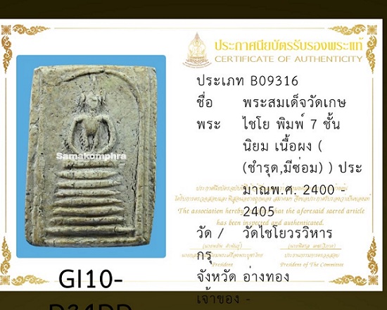 พระสมเด็จวัดเกศไชโย พิมพ์ 7 ชั้นนิยม เบญจภาคี