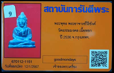 | พระพุทธหยกแกะ ปี2536 หลวงพ่อวิริยังค์ วัดธรรมมงคล |