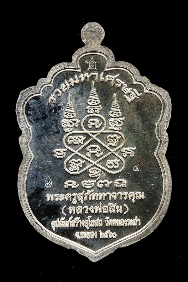 เหรียญเสมาหัวเสือ หลวงพ่อสิน รุ่นแรก รวยมหาเศรษฐี จัดสร้างปี 2560 พิธีพุทธาภิเษกใหญ่ ณ โบสถ์วัดละหารใหญ่ อ.บ้านค่าย จ.ระยอง อันศักดิ์สิทธิ์ ด้วยจำนวนการสร้างที่ชัดเจน บล็อค-แม่พิมพ์ ถูกทำลายเสร็จสิ้นหลังพิธี แต่ละเนื้อตอกโค๊ตและหมายเลขกำกับแยกโค๊ตและแยกเนื้อชัดเจน เนื้อเงินลงยาราชาวดี 4 สี ขุ้ยพื้นธงชาติ จำนวนการสร้าง 29 เหรียญ เหรียญนี้หมายเลข ๔ เลขหลักเดียวต้นๆ สวยหรู สง่างาม 1 ใน 29 เหรียญ สร้างน้อยหายากค่ะ