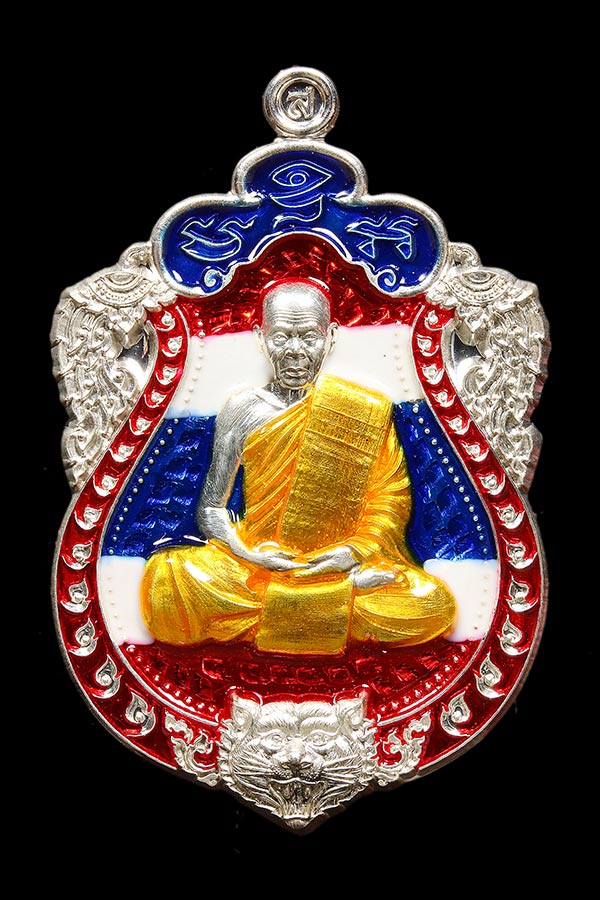 เหรียญเสมาหัวเสือ หลวงพ่อสิน รุ่นแรก เนื้อเงินลงยา