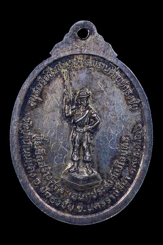 | เหรียญ ( ชุดทองคำ ) หลวงพ่อคูณ ปริสุทฺโธ วัดบ้านไร่ รุ่น ทหารพราน ที่ระลึกสร้างศาลาเอนกประสงค์ยงใจยุทธ วัดบ้านโนนแดง จ.นครราชสีมา พ.ศ.2526 ( กล่องเดิม ) // เนื้อเงิน จารยันต์อักขระ หน้าเหรียญ \" มะอะอุ อุอะมะ \" , หลังเหรียญ \" นะมะพะทะ อุอะมะ \" ลายมือหลวงพ่อคูณ // เนื้อทองแดง จารยันต์อักขระหลังเหรียญ \" นะมะพะทะ มะอะอุ \" ลายมือหลวงพ่อคูณ // ผู้จัดสร้าง : พลเอกชวลิต ยงใจยุทธ ได้มอบหมายให้พันเอกวันชัย อัมพุนันท์ ( ยศในขณะนั้น ) ผู้บังคับการค่ายทหารพรานปักธงชัย เป็นผู้รับหน้าที่ในการจัดหาทุนสร้างศาลาเอนกประสงค์ ถวายวัดโนนแดง // วัตถุประสงค์ : เพื่อสมทบทุนหาทุนทรัพย์มาจัดสร้างศาลาเอนกประสงค์ ถวายวัดโนนแดง เพื่อให้ใช้ประโยชน์ต่างๆโดยไม่ต้องมีการตัดไม้ทำลายป่า อันเป็นทรัพยากรธรรมชาติที่ควรอนุรักษ์ไว้ให้ลูกหลานสืบต่อไป // ประวัติค่ายทหารพราน : หน่วยทหารพรานจัดตั้งขึ้นเมื่อวันที่ 18 กรกฎาคม พ.ศ. 2521 ตามแนวคิดที่กำหนดไว้ว่า ทหารพราน คือ อาสาของประชาชน หรือเรียกว่านักรบประชาชน มีวัตถุประสงค์จัดตั้งเพื่อต่อสู้กับกองโจรพรรคคอมมิวนิสต์แห่งประเทศไทย และขับไล่กองโจรลงจากที่มั่นบนภูเขาในภาคตะวันออกเฉียงเหนือ เป็นแนวคิดของพล.อ. ชวลิต ยงใจยุทธ ซึ่งขณะนั้นเป็นผู้อำนวยการศูนย์ปฏิบัติการกองทัพบกที่กองบัญชาการกองทัพไทยในกรุงเทพมหานคร หน่วยทหารพรานประกอบด้วยทหารใหม่จากพื้นที่ซึ่งได้รับผลกระทบจากการก่อการกำเริบของคอมมิวนิสต์ ทหารใหม่นั้นจะเข้ารับการฝึกเข้มข้นทั้งหมด45 วัน ได้รับแจกอาวุธสมัยใหม่ และถูกส่งกลับไปยังหมู่บ้านของตนเพื่อดำเนินปฏิบัติการกองโจรต่อคอมมิวนิสต์ //++รายการ++//(1).พระกริ่งชุดทองคำ เนื้อทองคำ ฐานปิดแผ่นทองคำ , เนื้อเงิน ฐานปิดแผ่นทองคำ , เนื้อนวโลหะ ฐานปิดแผ่นเงิน ( รันหมายเลข ) 19 ชุด ( ข้อมูลเบื้องต้นอาจมีการเปลี่ยนแปลง ) // (2).พระกริ่งเนื้อเงิน ฐานปิดเงิน ( ตอก พ ) 99 องค์ // (3).พระกริ่งเนื้อเงิน ฐานติดแผ่นเงิน ( รันหมายเลข ) 526 องค์ ( ข้อมูลเบื้องต้นอาจมีการเปลี่ยนแปลง ) // (4).พระกริ่งทองแดง ฐานปิดแผ่นทองแดง ( ตอก พ ) 2000 องค์ ( แจกทหาร ) // (5).พระกริ่งทองแดง ฐานปิด แผ่นทองแดง 2526 องค์ ( ประชาชนร่วมทำบุญ ) // (6).พระผงนาคปรก ฝังตะกรุด 1000 องค์ // (7).พระผงรูปเหมือน ฝังตะกรุด 1000 องค์ // (8).พระผงสังกัจจายน์ ฝังตะกรุด 1000 องค์ // (9).พระปิดตา ฝังตะกรุด 1000 องค์ // (10).เหรียญชุดทองคำ เนื้อทองคำเนื้อเงิน , เนื้อทองแดง 19 ชุด ( ข้อมูลเบื้องต้นอาจมีการเปลี่ยนแปลง ) // (11).เหรียญรูปเหมือน 10000 เหรียญ // (12).พระชุด 5 องค์ ( เหรียญ , ผงรูปเหมือน , ผงนาคปรก , ผงปิดตา , ผงสังกัจจายน์ ) 5000 ชุด // (13).พระบูชาสังกัจจายน