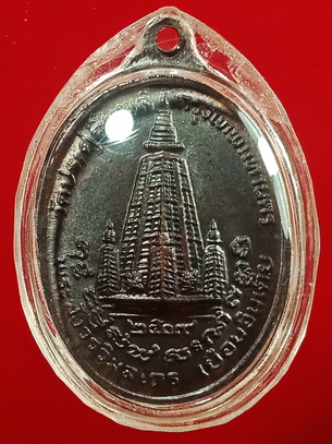 | เป็นเหรียญที่ระลึกเนื่องในโอกาสที่หลวงปู่ได้เดินทางไปประเทศอินเดีย ด้านหลังเป็นรูปเจดีย์ที่พุทธคยา เพื่อเป็นอนุสรณ์ว่า ครั้งหนึ่งหลวงปู่ได้เดินทางไปสักการะสังเวชนียสถานอันศักดิ์สิทธิ์แห่งนี้ .........เหรียญที่นำลงในชมรมเป็นเนื้อนวโลหะ สภาพสวย ใบหน้าหลวงปู่ชัดเจนมาก เห็นดวงตาชัด ริมฝีปากชัด จมูกโด่งสวยงามมาก ไม่มีรอยขูดขีดตามใบหน้าของหลวงปู่ มีผิวไฟสีส้มตามกนกทั้ง2ข้าง และตามตัวหนังสือด้านหน้า ตอกโค้ด \\\\\\\\\\\\\\\"ต\\\\\\\\\\\\\\\" ในโบว์ สร้างจำนวนเพียง 2,000 เหรียญ มีผิวคล้ายผิวปรอทเดิมคลุมเต็มอยู่ทั่วผิวเหรียญ .............( เหรียญรุ่นนี้สร้างด้วยเนื้อนวโลหะน้อยมาก เสมาหลังพัดยศ ปี 2518 สร้างนวโลหะ 6,000 เหรียญ ,รูปไข่หลังพัดยศสร้างนวโลหะ 10,000 เหรียญเยือนอินเดียนวโลหะสร้างเพียง 2,000 เหรียญเท่านั้น ) |