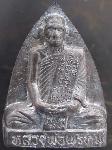เป็นรุ่นหนึ่งในหลายรุ่นที่ทำขึ้น เพื่อหาเงินบำรุงวัด และเข้าพิธี เสาร์ 5 ปี 16 โดยกรรมการวัด โดย มี ทั้งหมด 4 แบบ คือ เข่ากว้างหลังเตารีด เข่ากว้างหลังเสมา (หลังเตารีดมาตัดเป็นรูปใบเสมา) เข่ากว้างหลังเรียบ และหลังเข็มกลัด โดยทำรุ่นเข่ากว้างหลังเตารีดก่อน ใช้แม่พิมพ์ด้านหน้าอันเดียวกันหมด ครับ ทั้ง 4แบบ โดยหลังเตารีด จะมีทั้งหมด 5 เนื้อ คือ 1) เนื้อทองคำ 2 องค์ ของส่วนตัวหมอสมสุข 2) เนื้อเงิน จำนวน 29 องค์ 3) เนื้อทองแดง จำนวน 5 องค์ 4) เนื้อทองระฆัง จำนวน 2,000 องค์ 5) เนื้อตะกั่ว รวมทั้งตะกั่วชุบทอง จำนวน 1,000 องค์ สำหรับองค์ที่ลงประมูลนี้ เป็นเข่ากว้างหลังเตารีด เนื้อตะกั่วครับ ด้านหน้าสมบูรณ์มาก และด้านหลังสมบูรณ์ สบายใจได้ครับ สภาพเก่าเก็บ ไม่ได้ ล้างผิว หรือบิวผิวใหม่แต่อย่างใด รวมทั้งไม่ได้ใช้เทดนิดการแต่งภาพ ถ่ายรูปให้พระดูสวยเกินจริงแต่อย่างใด ผมถ่ายภายใต้แสงอาทิตย์ ในร่ม ตอน บ่าย2 นอกจากนั้น องค์นี้ พิเศษตรงมีคาบแป้งเจิมตรง ตัวหนังสือคำว่าหลวง รับประกันตามเงื่อนไขทุกประการ