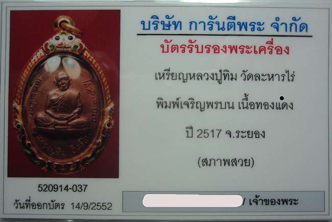 เหรียญเจริญพรบน หลวงปู่ทิมวัดละหารไร่