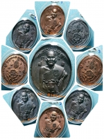 | รูปหล่อหลวงปู่ดู่ นั่งบัว อุดผงจักรพรรดิ+เกศา+รอยจ |