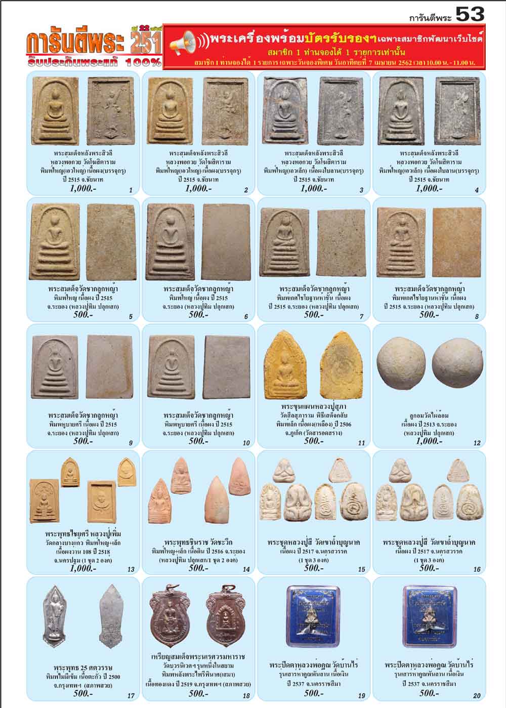 - จึงเรียนมาเพื่อขอบพระคุณท่านสมาชิก และ เรียนเชิญท่านสมาชิกฯ เข้าร่วมเช่าพระเครื่องราคาถูกพิเศษพร้อมบัตรรับรองพระเครื่องทุกองค์ ในวันที่ 7 เม.ย 62 นี้ค่ะ