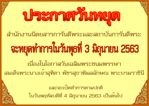 ประกาศวันหยุด วันเฉลิมพระชนมพรรษา สมเด็จพระนางเจ้าสุทิดา พัชรสุธาพิมลลักษณ พระบรมราชินี
