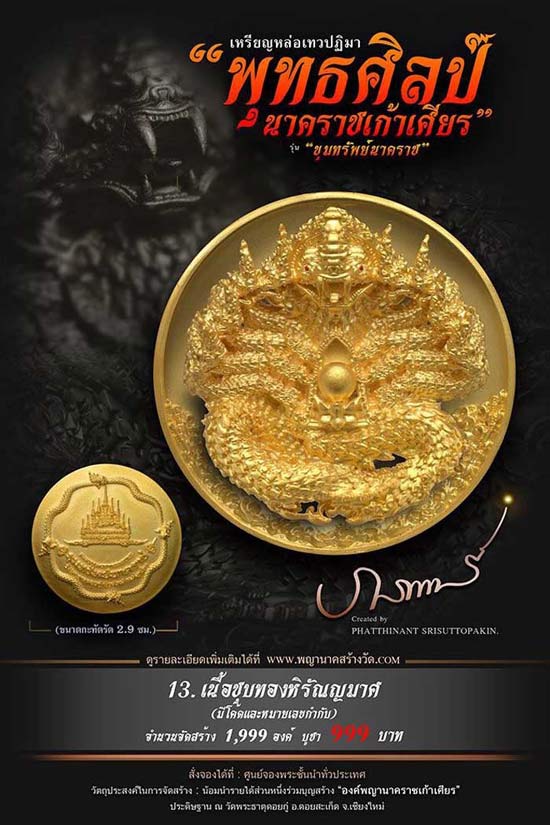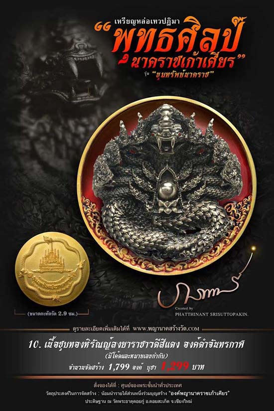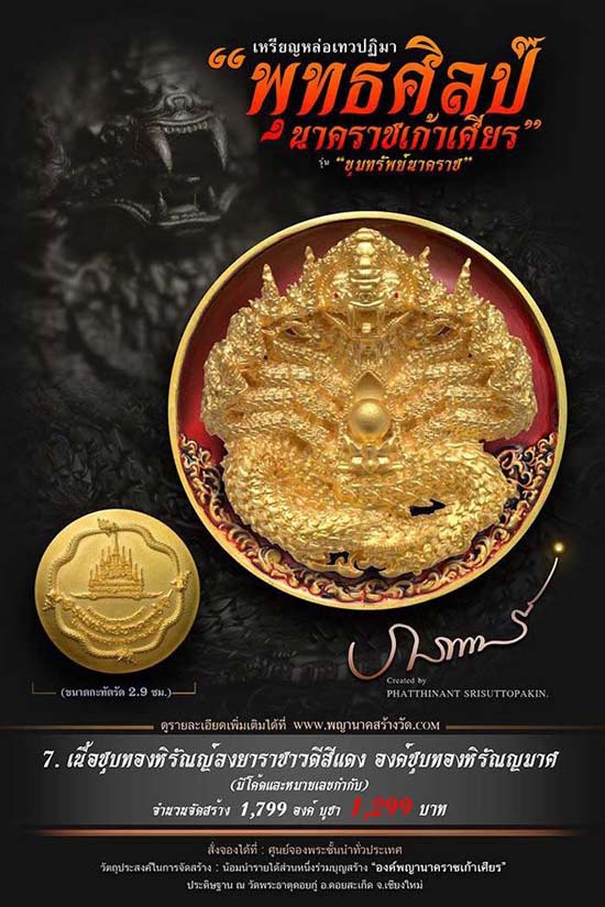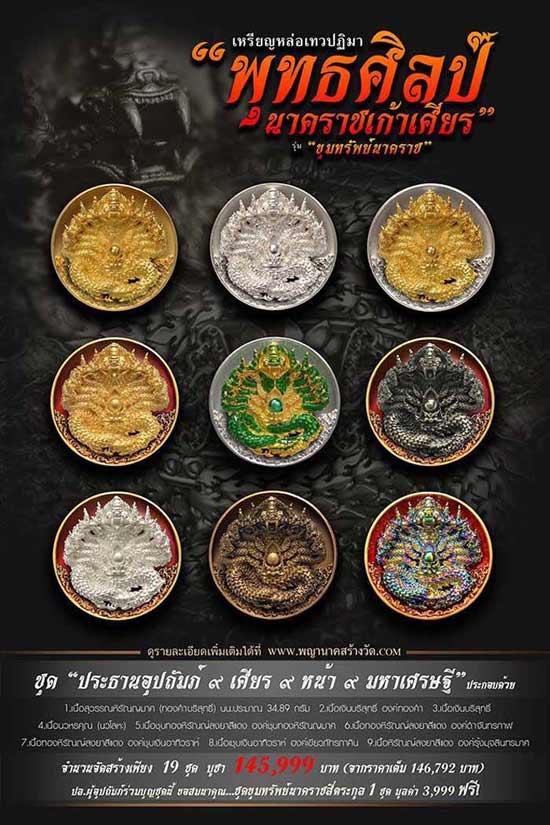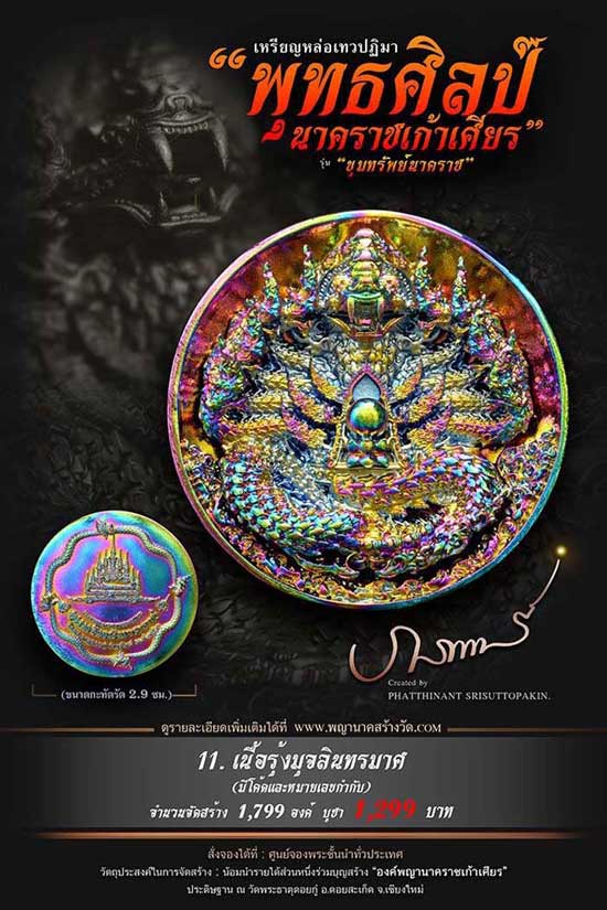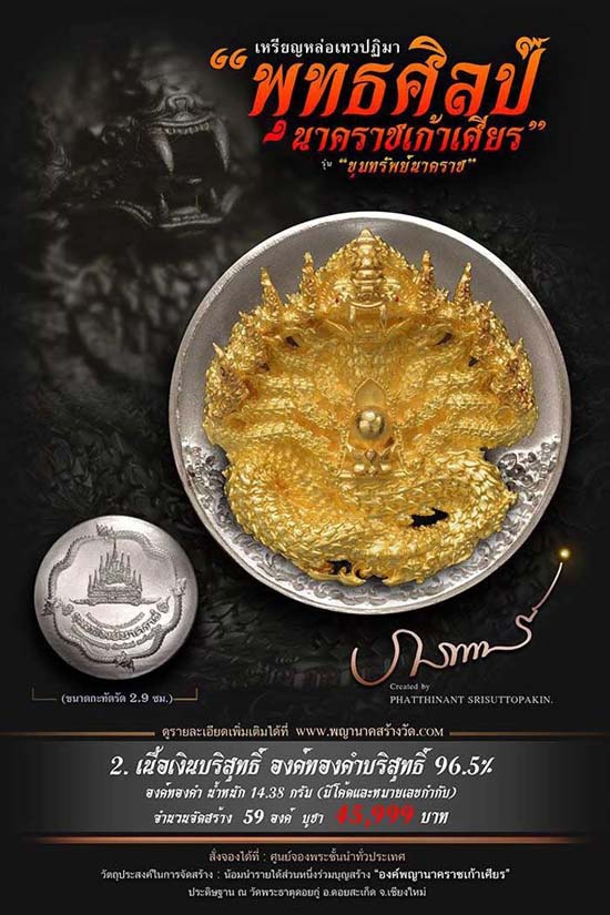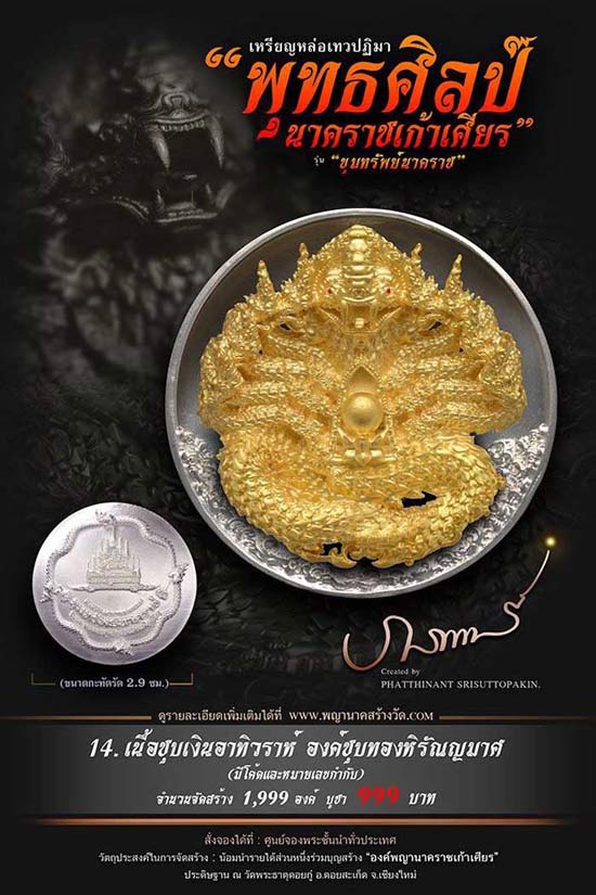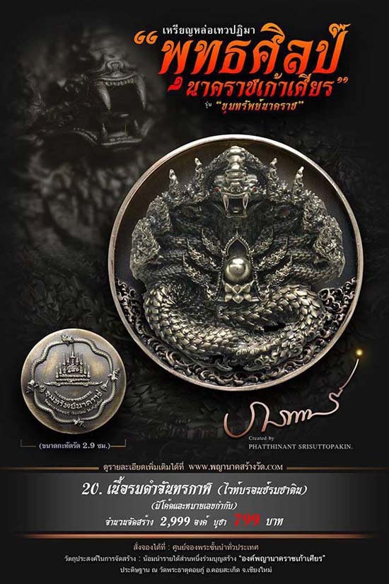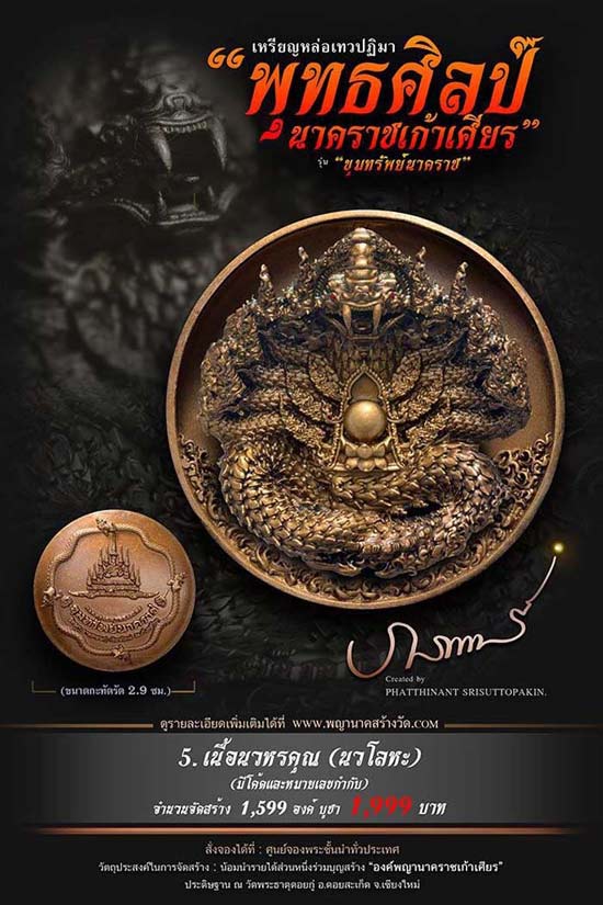 เหรียญหล่อเทวปฏิมาพุทธศิลป์ "นาคราชเก้าเศียร" รุ่น "ขุมทรัพย์นาคราช" ออกวัดพระธาตุดอยกู่ (ครูบาศรีวิชัย) จ.เชียงใหม่