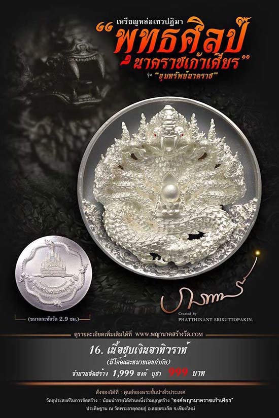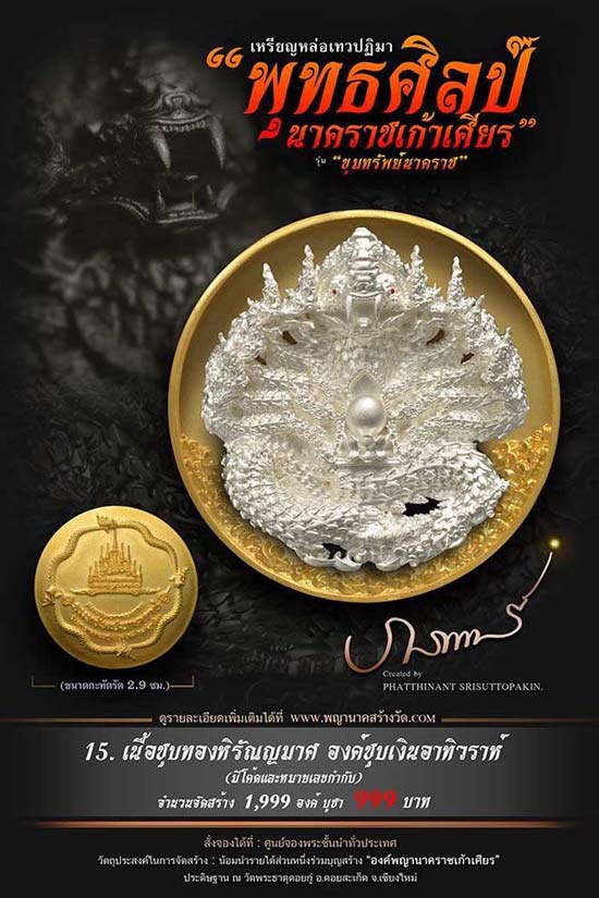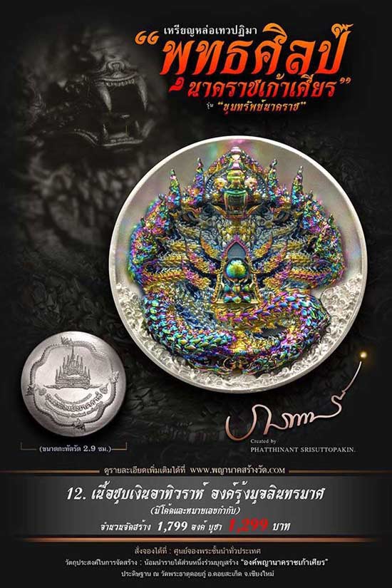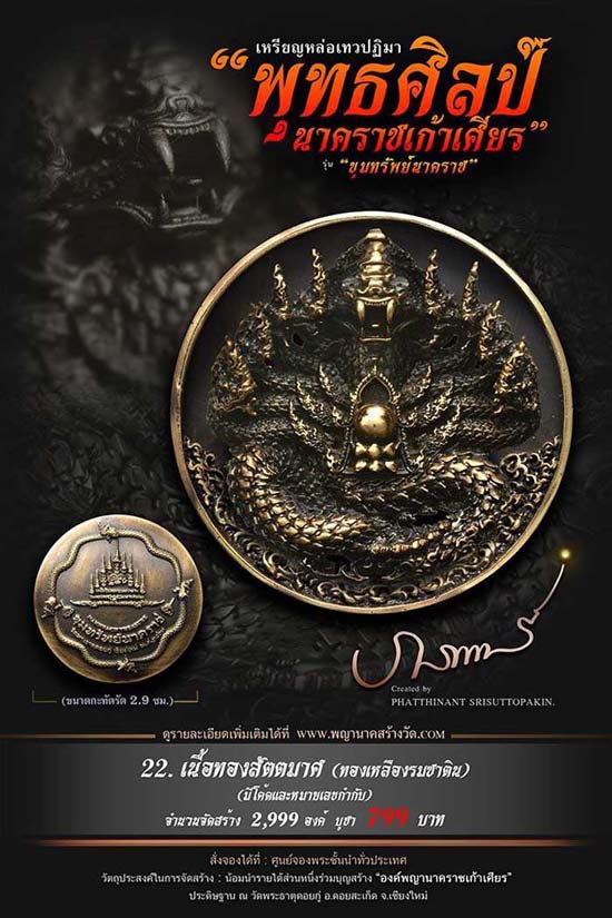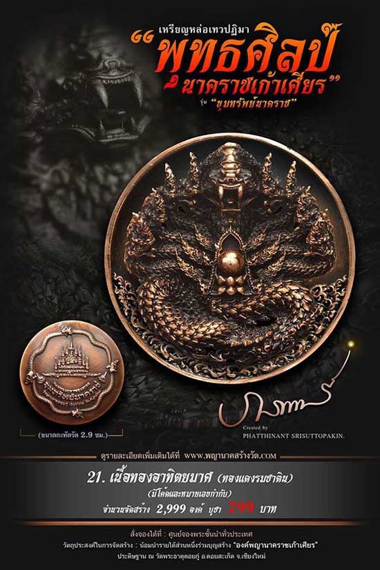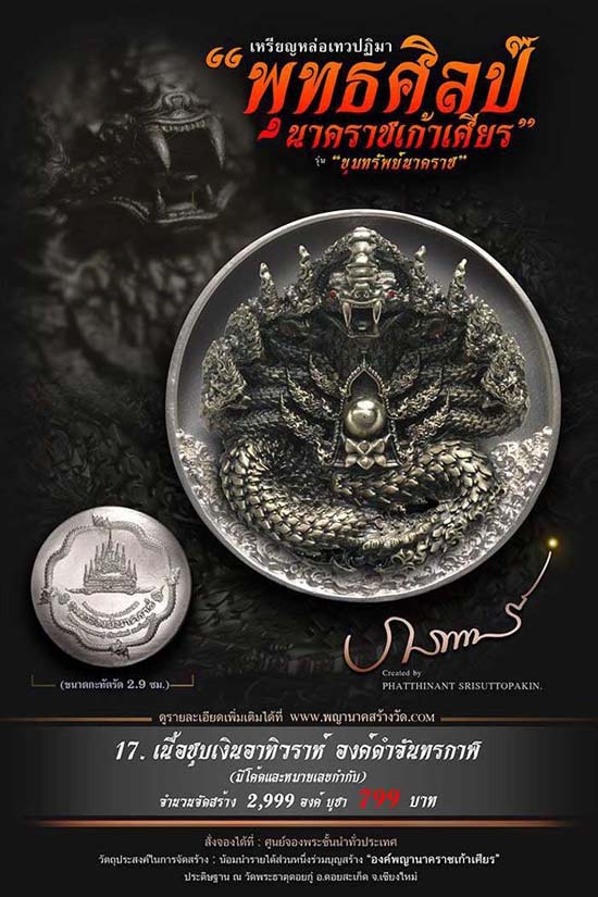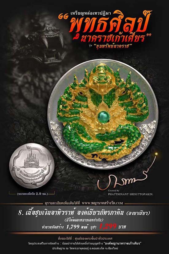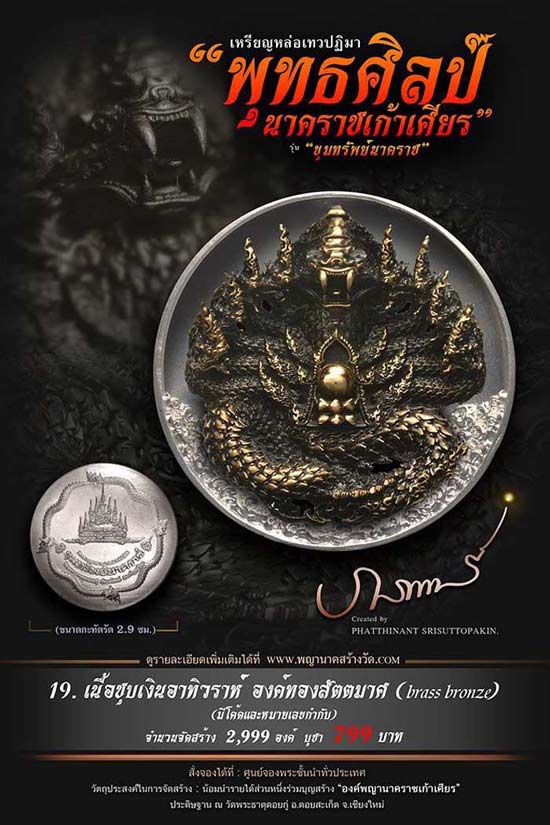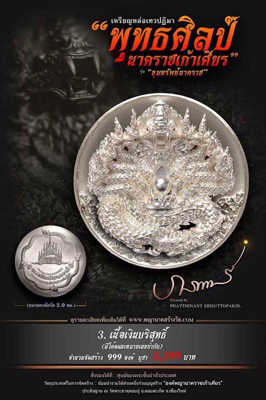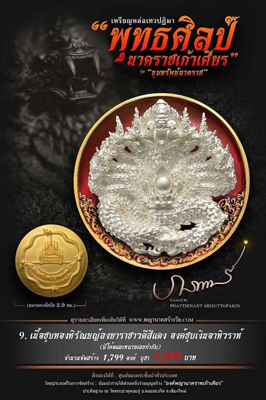 เหรียญหล่อเทวปฏิมาพุทธศิลป์ "นาคราชเก้าเศียร" รุ่น "ขุมทรัพย์นาคราช" ออกวัดพระธาตุดอยกู่ (ครูบาศรีวิชัย) จ.เชียงใหม่