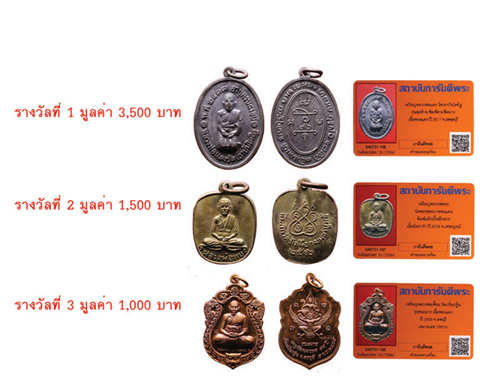 - ท่านสมาชิกทั้ง 3 ท่าน สามารถขอรับรางวัลได้ที่สถาบันการันตีพระ เคาน์เตอร์ ชั้น 5 หรือ โทรแจ้งให้จัดส่งทางไปรษณีย์ได้ที่เบอร์ 02-551-2086 ( ค่าจัดส่ง 100 บาท )