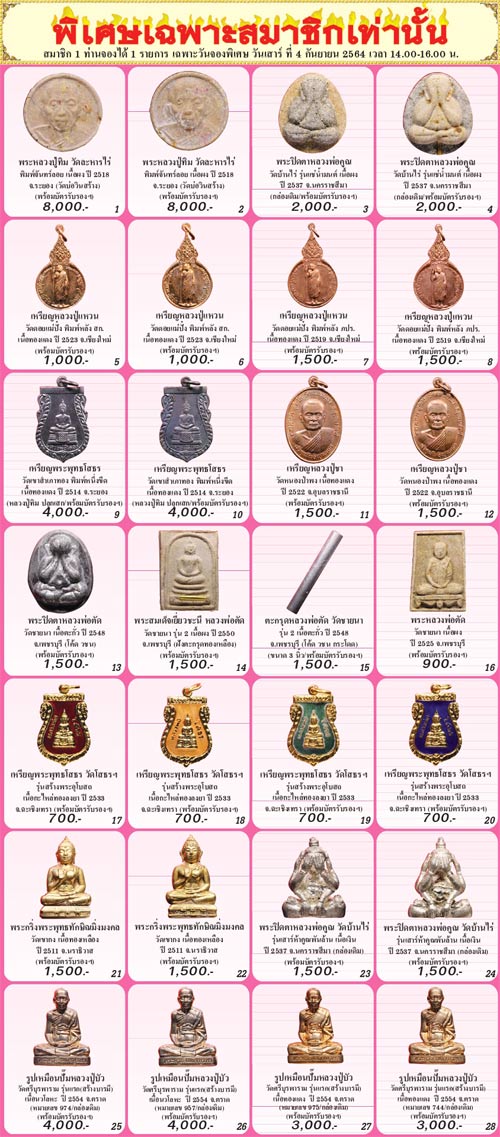*** ในหน้า 2 ฉบับที่ 280 ประจำเดือนกันยายน 2564 สมาชิกนิตยสารการันตีพระ และสมาชิกพัฒนาเว็บไซต์ฯ สามารถโทรจองได้ในวัน *** เสาร์ที่ 4 กันยายน 2564 เวลา 14.00-16.00 น. ***