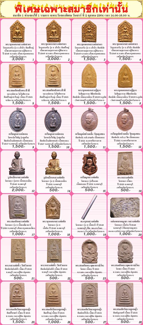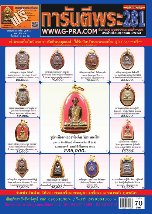 *** ในหน้า 2 ฉบับที่ 281 ประจำเดือนตุลาคม 2564 สมาชิกนิตยสารการันตีพระ และสมาชิกพัฒนาเว็บไซต์ฯ สามารถโทรจองได้ในวัน *** เสาร์ที่ 2 ตุลาคม 2564 เวลา 14.00-16.00 น. ***