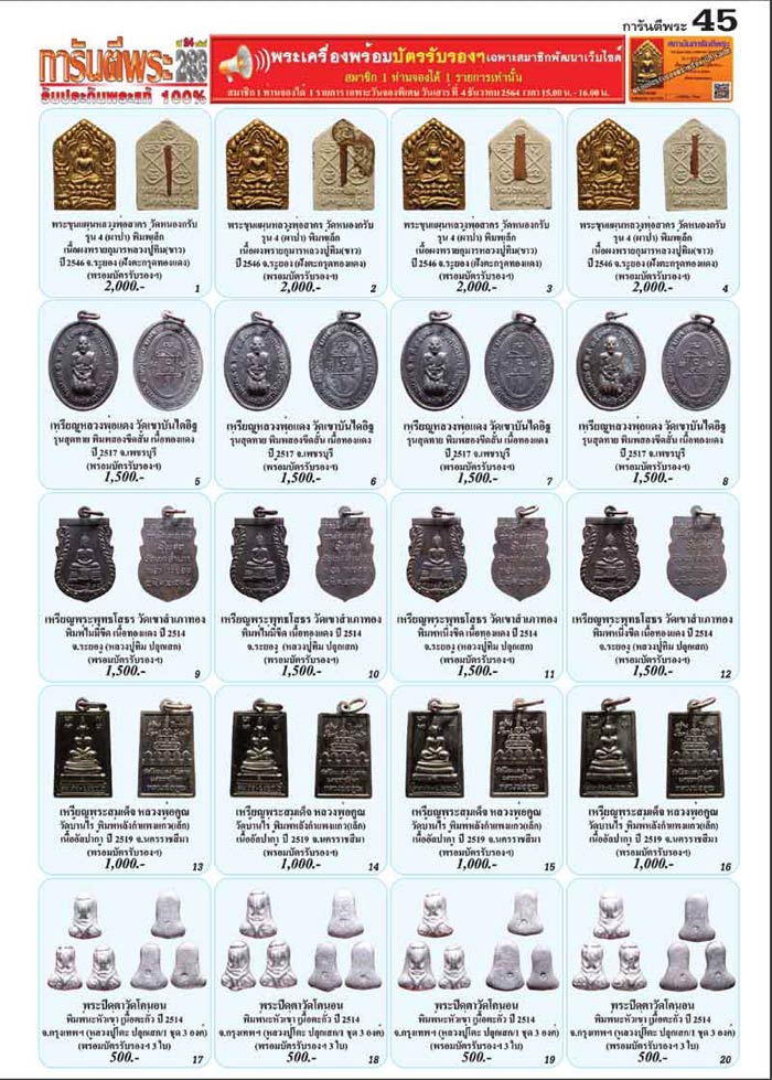 - เปิดเช่าพระเครื่องในราคา ** ถูกพิเศษ** ในหน้าพิเศษนี้ จำนวน 20 องค์ พร้อม ** บัตรรับรองพระเครื่องทุกองค์ ** ในวันเสาร์ที่ 4 ธันวาคม 2564 เวลา 15.00-16.00 น. ที่เบอร์โทร 085-526-8682 และ 085-992-6303 เท่านั้น