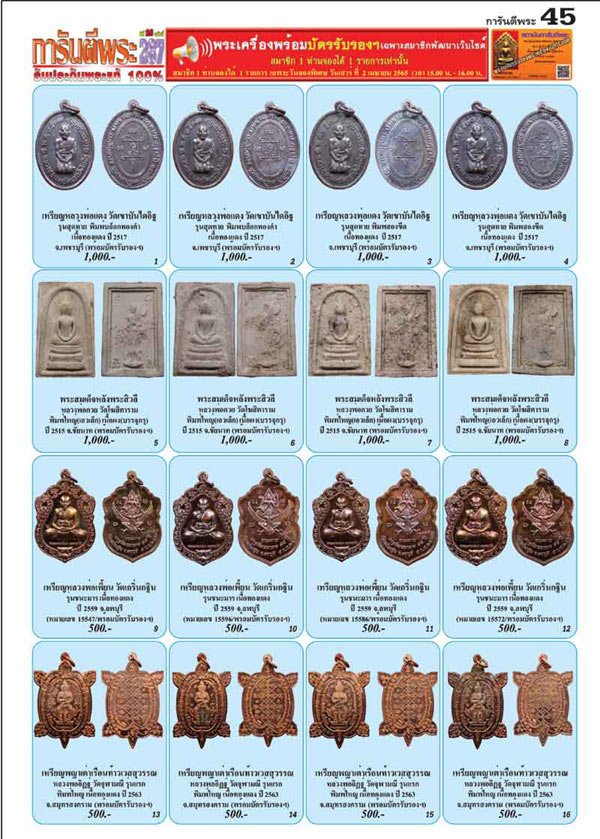 - เปิดเช่าพระเครื่องในราคา ** ถูกพิเศษ** ในหน้าพิเศษนี้ จำนวน 16 องค์ พร้อม ** บัตรรับรองพระเครื่องทุกองค์ ** ในวันเสาร์ที่ 2 เมษายน 2565 เวลา 15.00-16.00 น. ที่เบอร์โทร 085-526-8682 และ 085-992-6303 เท่านั้น