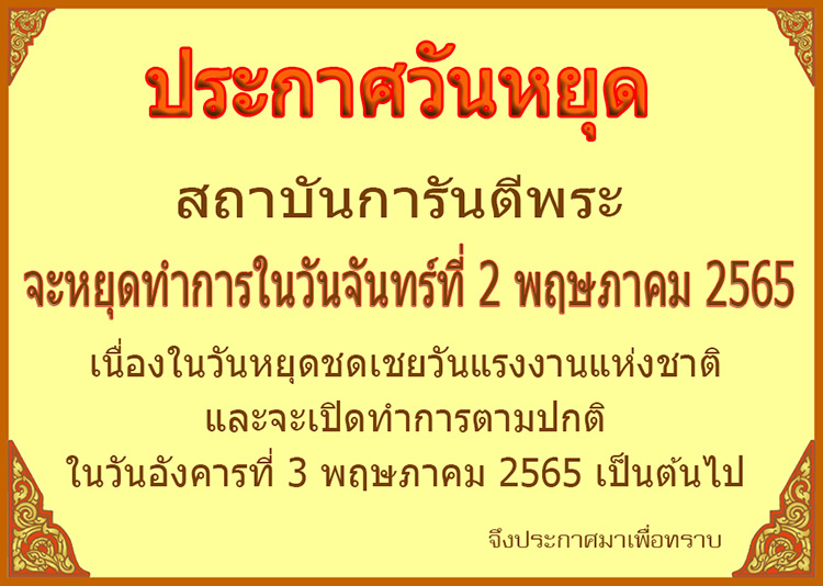 ทราบประกาศวันหยุดแล้วครับ ขอบคุณครับ