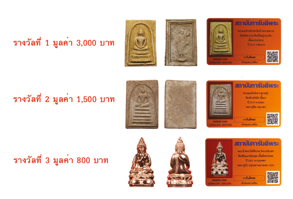 - เพื่อแทนคำขอบคุณนี้ ทางเว็บไซต์ฯ ขอมอบพระเครื่องพร้อมบัตรรับรอง QR Code จำนวน 3 รางวัลประจำเดือนกรกฎาคม 2565 นี้ให้กับท่านสมาชิกฯ โดยทางเว็บไซต์ฯจะจับสลากจากรายชื่อท่านสมาชิกพัฒนาเว็บไซต์ฯทุกท่าน ในวันเสาร์ที่ 2 กรกฎาคม 2565 เวลา 16.00 น. และจะประกาศรายชื่อผู้ได้รับรางวัล ที่หน้าเว็บไซต์ฯในวันจันทร์ที่ 4 กรกฎาคม 2565 โดยท่านสมาชิกสามารถรับรางวัลได้ที่สถาบันการันตีพระ ชั้น 5 หรือ แจ้งให้จัดส่งทางไปรษณีย์ได้ทางไลน์แอดที่ @g-pra.payment (24 ชั่วโมง) หรือโทรแจ้งที่เบอร์โทร 02-551-2086 ( ค่าจัดส่ง 100 บาท )