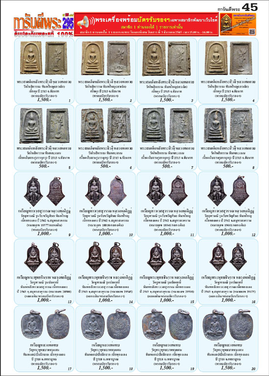 - เปิดเช่าพระเครื่องในราคา ** ถูกพิเศษ** ในหน้าพิเศษนี้ จำนวน 20 องค์ พร้อม ** บัตรรับรองพระเครื่องทุกองค์ ** ในวันเสาร์ที่ 3 ธันวาคม 2565 เวลา 15.00-16.00 น. ที่เบอร์โทร 085-526-8682 และ 085-992-6303 เท่านั้น