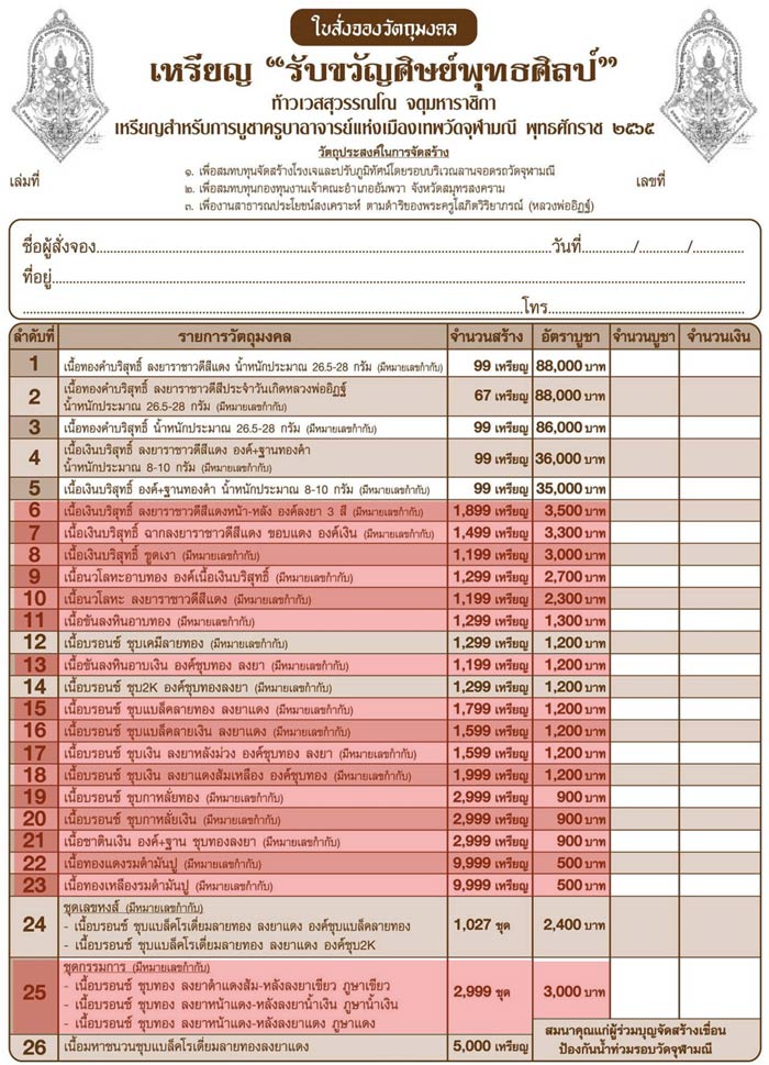 รายการที่เปิดจอง ** ตัวหนังสือสีแดง ** โดยมีรายการดังนี้