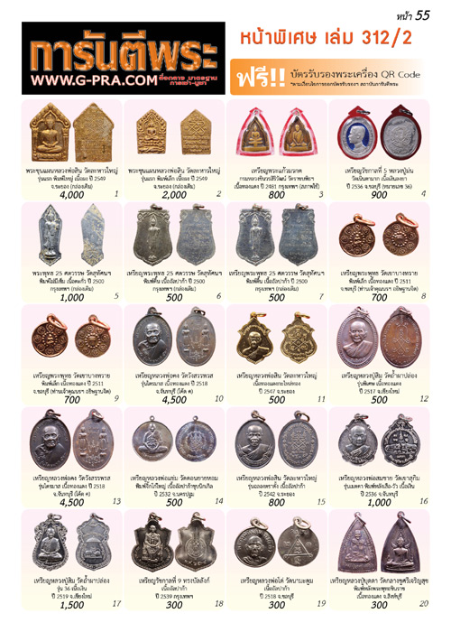 🎉🎉 ขอเชิญเช่าบูชาพระเครื่องราคาถูกพิเศษ แถม บัตรรับรอง 1 ใบ ** หน้าพิเศษ 1 ( จำนวน 4 หน้า ) ของฉบับที่ 312 https://www.g-pra.com/magazine.php