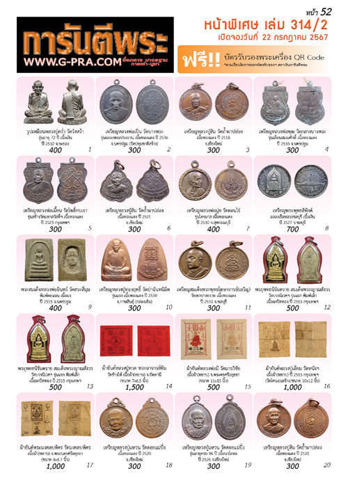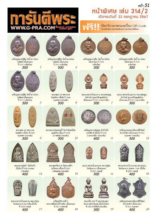 💥ขอเชิญเช่าบูชาพระเครื่องราคาถูกพิเศษ แถม บัตรรับรอง 1 ใบ ** หน้าพิเศษ 2 ( จำนวน 3 หน้า ) ของฉบับที่ 314 https://www.g-pra.com/magazine.php