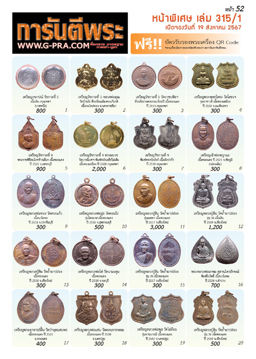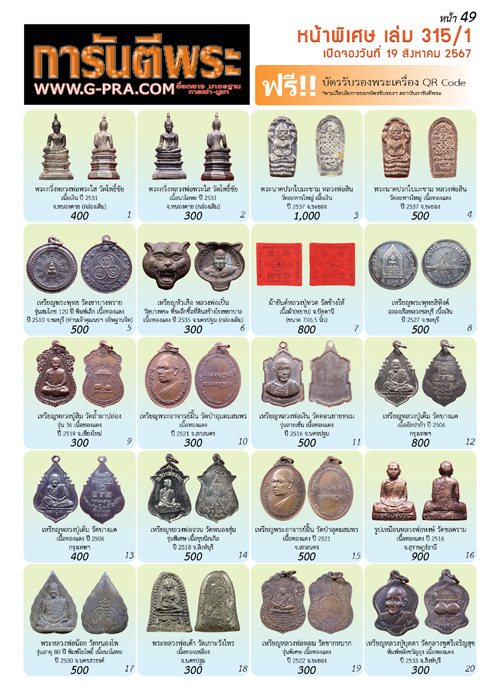 💥ขอเชิญเช่าบูชาพระเครื่องราคาถูกพิเศษ แถม บัตรรับรอง 1 ใบ ** หน้าพิเศษ 1 ( จำนวน 4 หน้า ) ของฉบับที่ 315 https://www.g-pra.com/magazine.php
