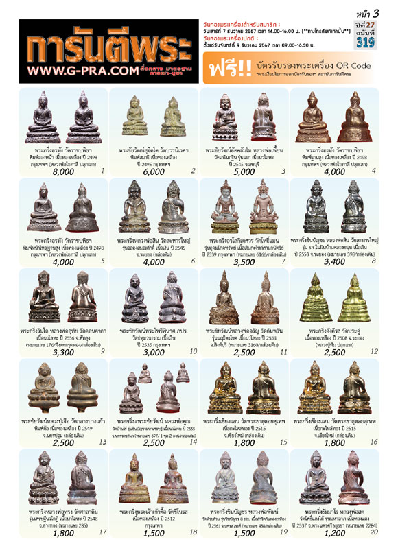 🎯 เรียนเชิญสมัครสมาชิกพัฒนาเว็บไซต์ฯ หรือ สมาชิกนิตยสารการันตีพระออนไลน์ เพียงปีละ 1000 บาท เท่านั้น *** https://www.g-pra.com/information/show.php?Category=info1&No=1754