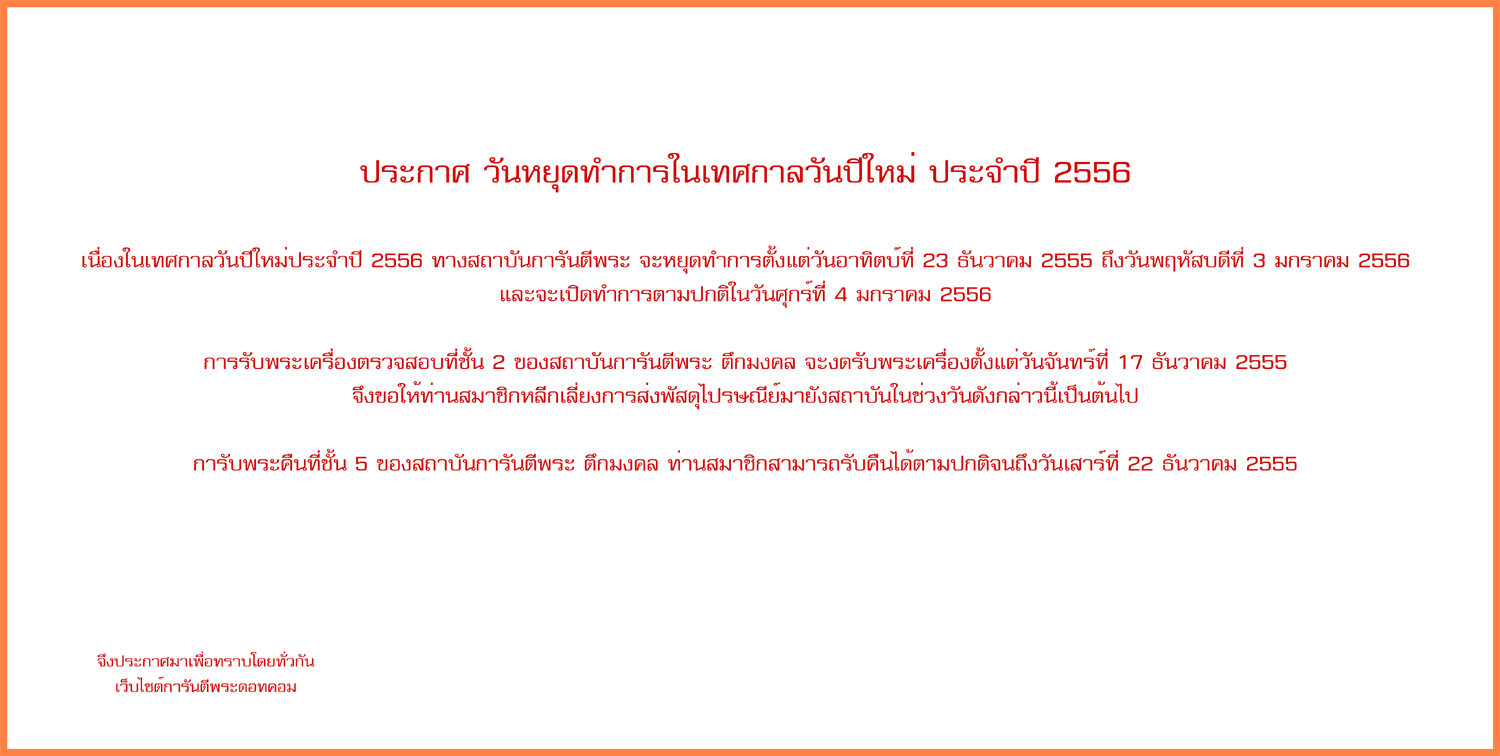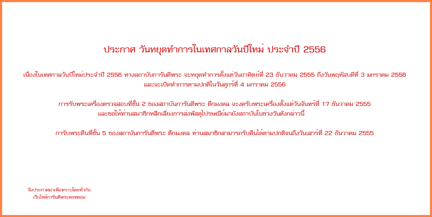 ** ประกาศแจ้งวันหยุดทำการสำนักงานนิตยสารการันตีพระ **