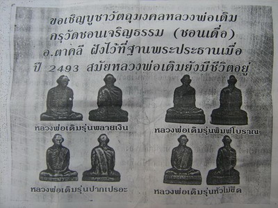เรียนคุณ tavani มีที่บิ๊กซีนครสวรรค์กับริมอุทยานสวรรค์หน้าโรงพยาบาลศรีสวรรค์ครับในบิ๊กซีขาย 2,500บาทตลาดนัดหน้าค่ายจิรประวัติก็ประมาณ2,000-3,000บาทคงเลือกดูคนผมถามบอก3,000 บาทเลยส่วนถูกที่สุดแผงหน้าโรงพยาบาลศรีสวรรค์ เมื่อวานองค์สวยๆผมซื้อมา1,200 บาทประวัติไม่แน่ชัดคนขายบอกทันก็อายๆเหมือนกันเวลาเช่ามา แต่เห็นน้องคนหนึ่งเขาเลือกไงเขาเก็บไปแล้วสององค์สัปดาห์ก่อนมาเก็บใหม่เขาก็เลือกไปอีกสององค์ แล้วเขาก็เลือกให้ผมสององค์สอนดูเส้นข้างหูไว้ก่อนเขานิยมกัน ผมก็เลยเลือกจ่ายเท่าเขาไม่งั้นแพงกว่านี้เขาจะเรียกราคากัน1,500 บาทมีคราบปรอทที่องค์ของผมเขาเอาไม่สวยขายก่อนคราบปรอทมีน้อยมากเกือบหมด เลยต่อเอาครับลองสอบถามประวัติเขาดูว่าได้มาอย่างไร ผมถามเขาบอกอยู่หัวเตียงนอนคนสร้างเลยมีตั้งหลายรุ่นเนื้อผง สองพันกว่าหมดไปแล้วเหลือรุ่นนี้รุ่นสุดท้ายที่อยู่หัวเตียง อย่าไปเชื่อเสียทีเดียวเอาแค่พอมีเก็บไว้สักองค์อย่าไปเก็บเยอะกันพลาดแต่สวยจริงๆครับ บอกตอนงานประกวดสิ้นปีจะเอามาออกกันหนังสือลงอย่างกลางๆว่านคนสร้างไว้แจกเพื่อนฝูงและพนักงานแล้วไม่ได้แจกหรือแจกบางส่วนแต่ไม่มีประวัติการสร้างยืนยัน ยังเสียดายวัดชอนเดื่อไม่เล่นองค์ละ 200บาทอย่างสวยแท้รุ่นแรกตอนออกมาเพื่อนโชว์ให้ดูยังบอกของเขาไม่ดีสักพักเชียร์กันไปมาองค์ละสามพันเลยเลยไม่มีกับเขาเลยสักองค์