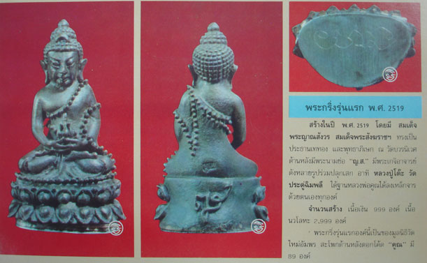 -เนื่องจากพระกริ่งและพระชัยวัฒน์ ญส วัดบวรนิเวศน์ ปี 2519 จารก้นพระโดย ลพ.คูณ วัดบ้านไร่ จากข้อมูลการสร้างเบื้องต้น 1.พระกริ่ง ญส เนื้อทองคำ สร้างจำนวน 39 องค์ 2.พระกริ่ง ญส เนื้อเงิน สร้างจำนวน 999 องค์ 3.พระกริ่ง ญส เนื้อนวโลหะก้นเงิน สร้างจำนวน 2999 องค์ 4.พระชัยวัฒน์ ญส สร้างจำนวน 2999 องค์