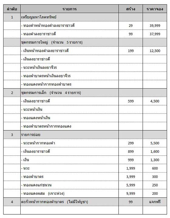 - รายการพระที่จะได้ จะเรียงตามลำดับการโพสต์จองตรงตามรายการพระโดยเรียงลำดับ 122 รายการดังนี้