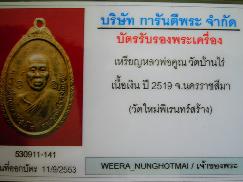 หมายเหตุ - กรณีพระเครื่องในรายการชนะการประมูลที่มีบัตรรับรองพระเครื่องอยู่แล้ว ถ้าผู้ตั้งประมูลพระเครื่องส่งพระเครื่องพร้อมบัตรฯมาตรวจสอบและเปลี่ยนชื่อในบัตรฯใหม่ให้ผู้ชนะประมูล จะคิดค่าธรรมเนียมฯนี้ 100 บาท + ค่าจัดส่งพระให้ผู้ชนะประมูล 100 บาท และได้รับการยกเว้นค่าธรรมเนียมบัตรฯ 100 บาท ( เป็นอัตราเดิมของปี 2553 ) ดังนั้นหากชนะประมูลพระที่มีบัตรฯอยู่แล้ว ผู้ตั้งประมูลจะต้องแนบค่าธรรมเนียมฯมา 200 บาทเท่าเดิมเหมือนปี 2553